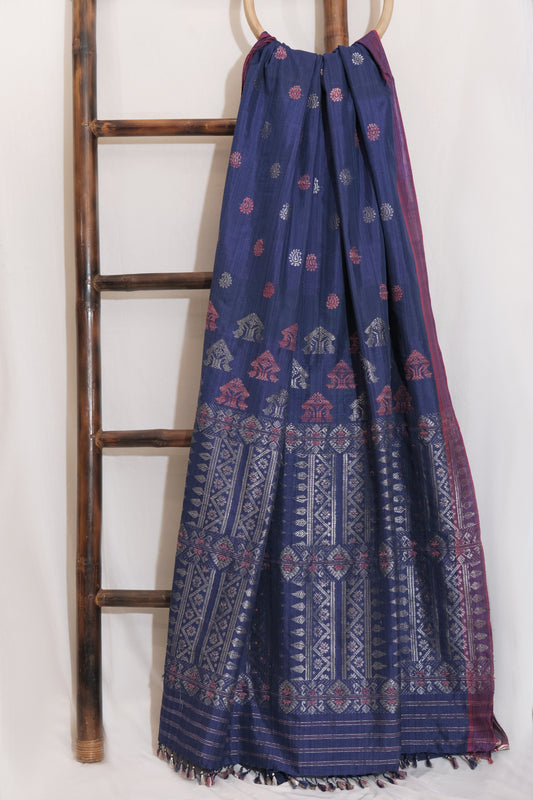 Saree - Mulberry silk & cotton, motifs in muga ghisa