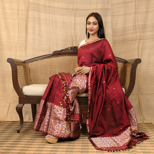 The Mekhela Sador crafted from Paat silk embodies the rich heritage of Assam’s traditional weaving....