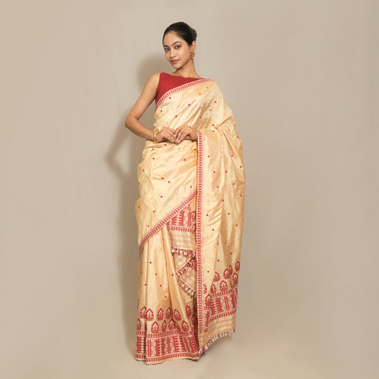 Mekhela Sador - Paat silk & motifs in Eri silk natural dye