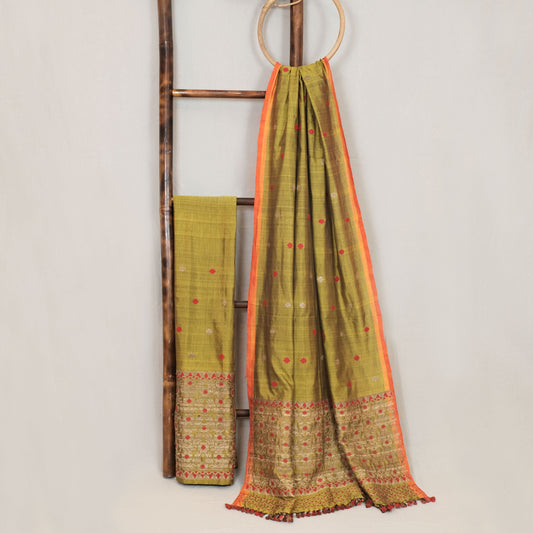The Mekhela Sador made from Eri silk and dyed with natural colors showcases sustainable craftsmanship...