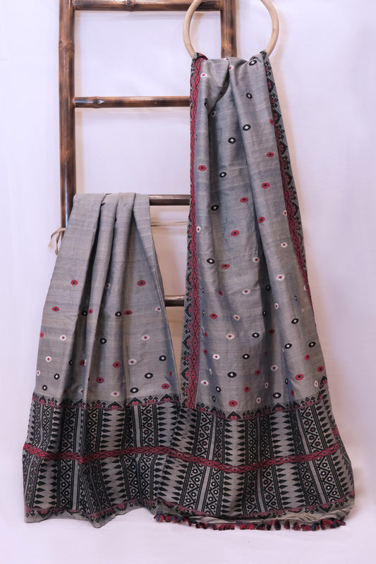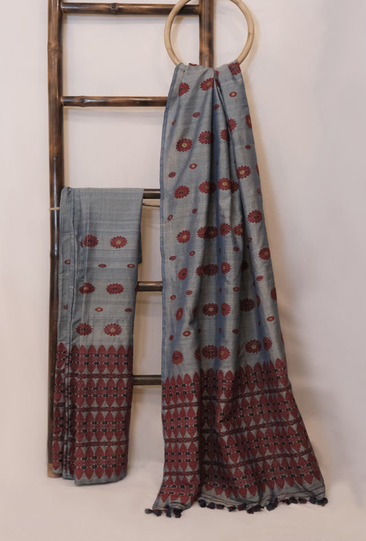 Mekhela Sador - Tassar silk and cotton motifs in Eri silk natural dye
