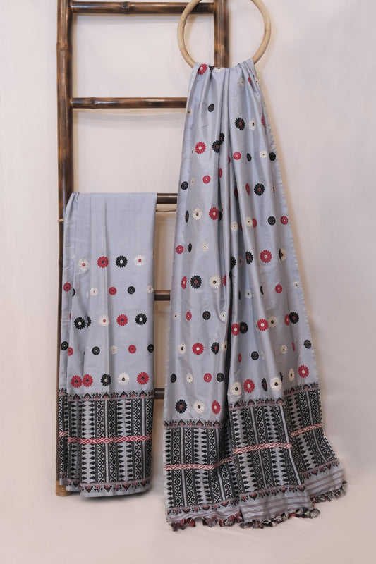 Mekhela Sador - Paat silk & motifs in Eri silk natural dye