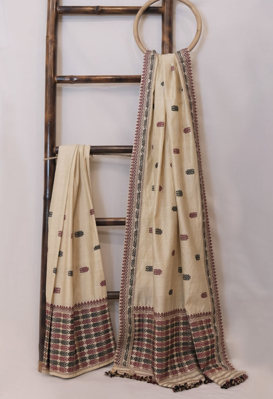 Mekhela Sador - Mulberry silk (nuni silk) motifs in Eri silk natural dye