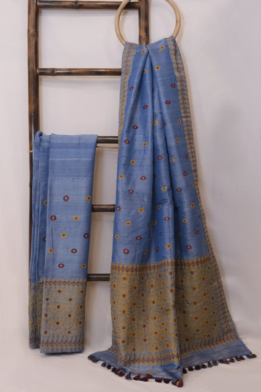 Mekhela Sador - Tassar silk & Eri silk motifs in cotton