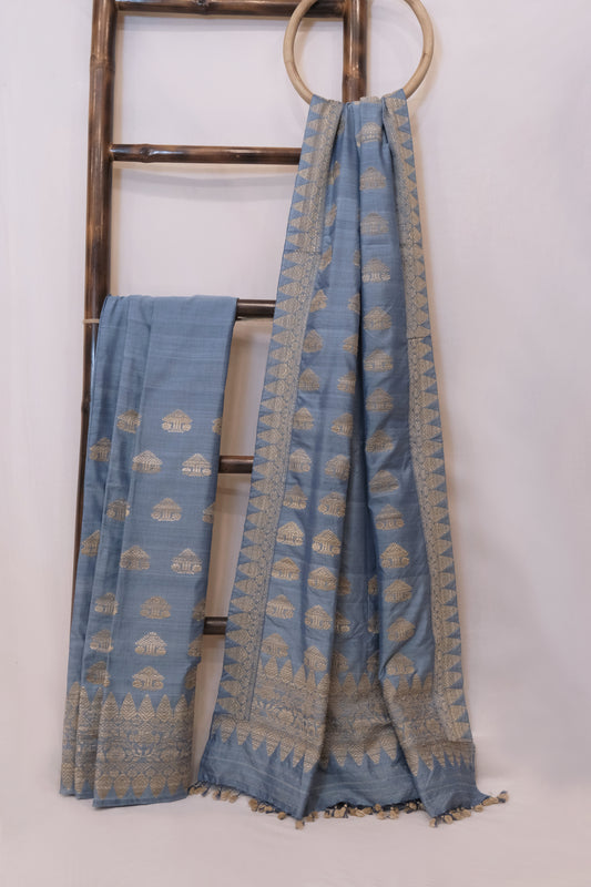 Mekhela Sador - Mulberry silk & cotton motifs Eri silk natural dye