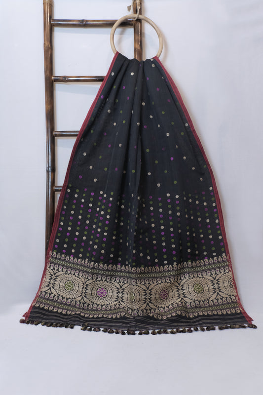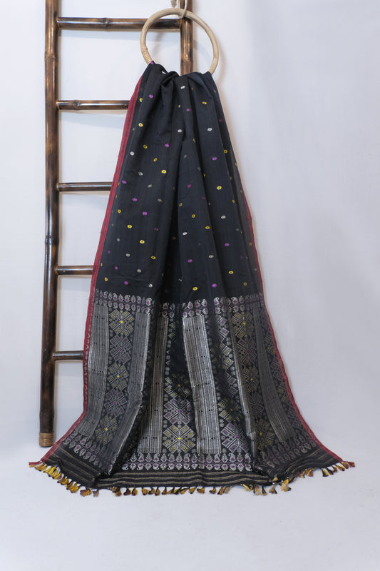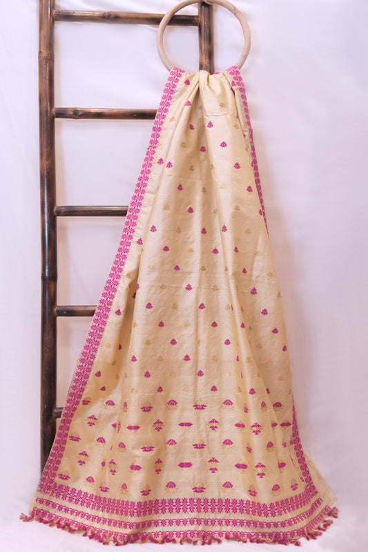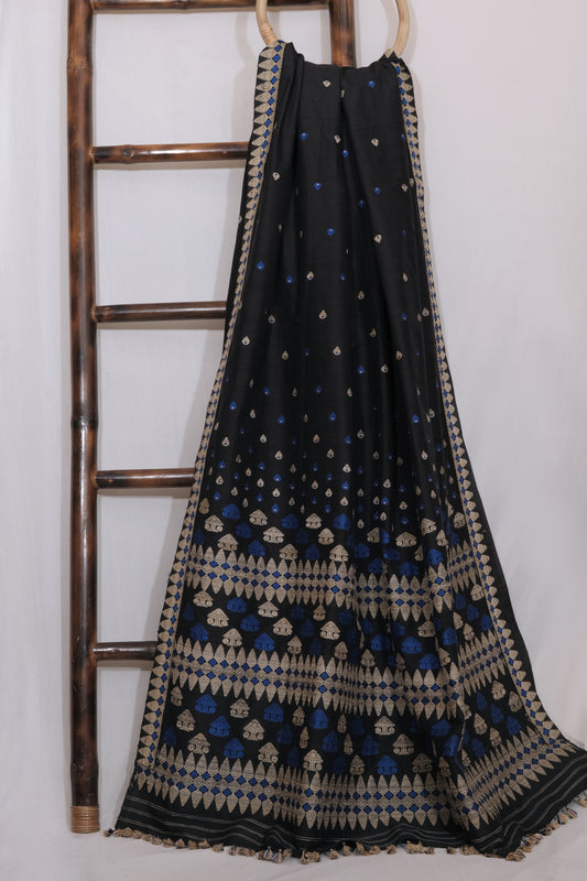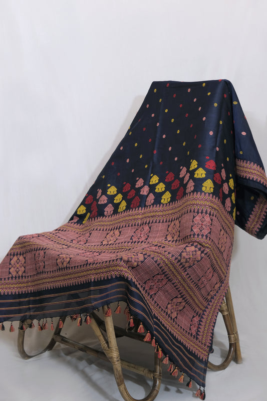Saree - Mulberry silk & cotton motifs in Muga ghisa & Eri natural dye
