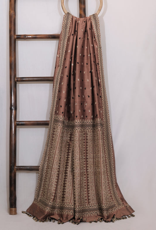 Saree - Mulbarry silk (Kesapaat) motifs Eri silk natural dye