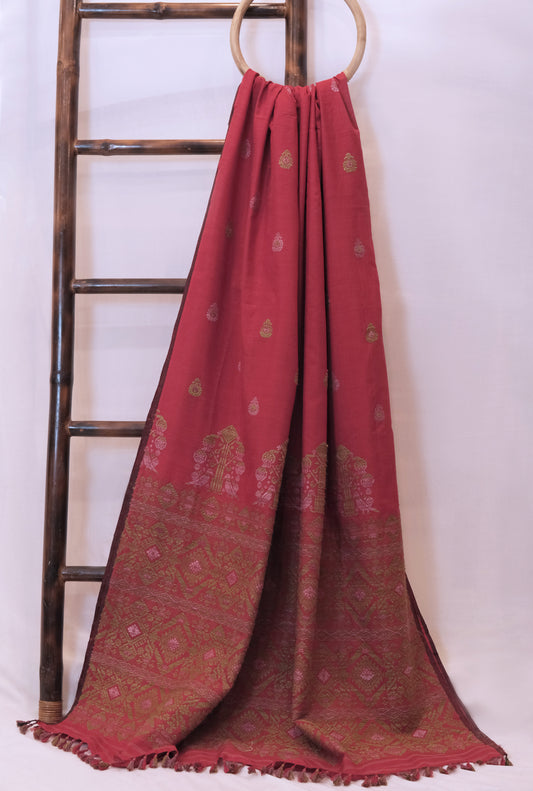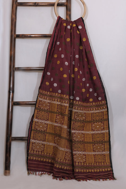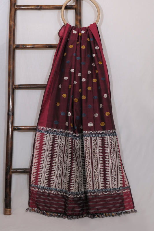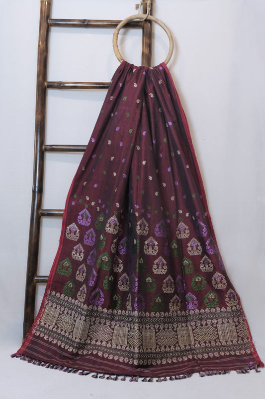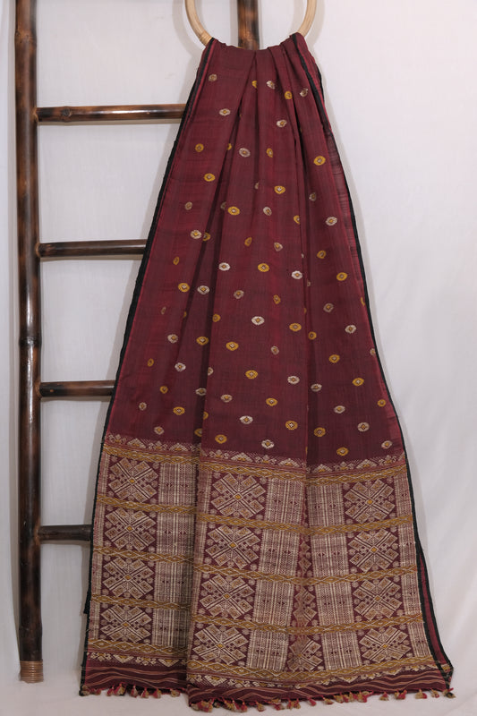 Saree - Mulberry silk & cotton motifs in Muga ghisa silk & Eri silk natural dye