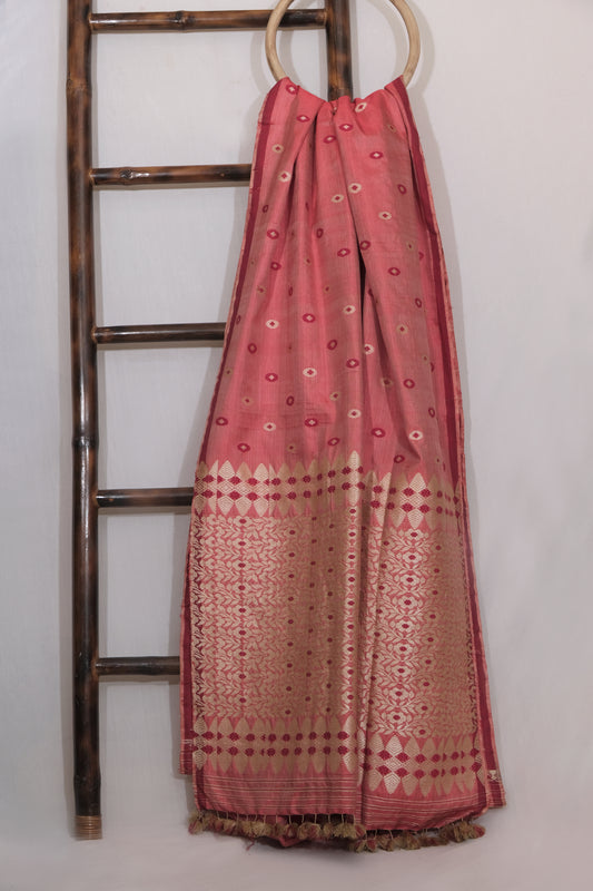 Elevate your style with our luxurious Saree, crafted from a blend of Tassar and Mulbarry...