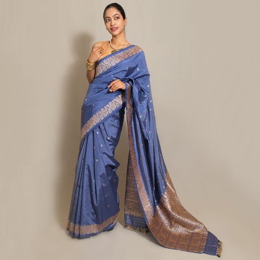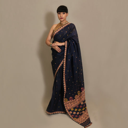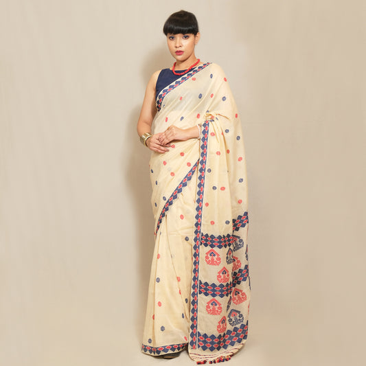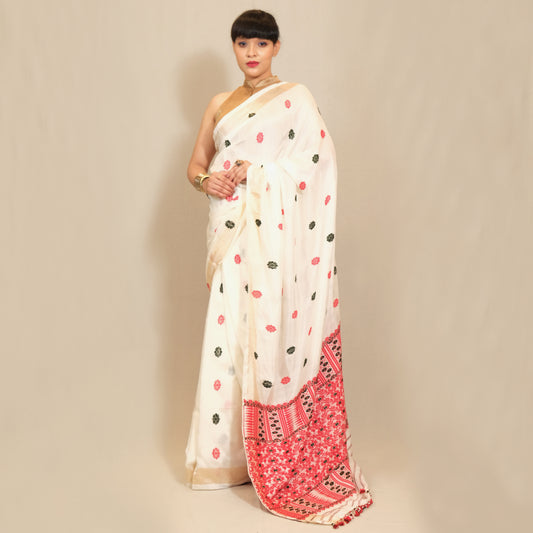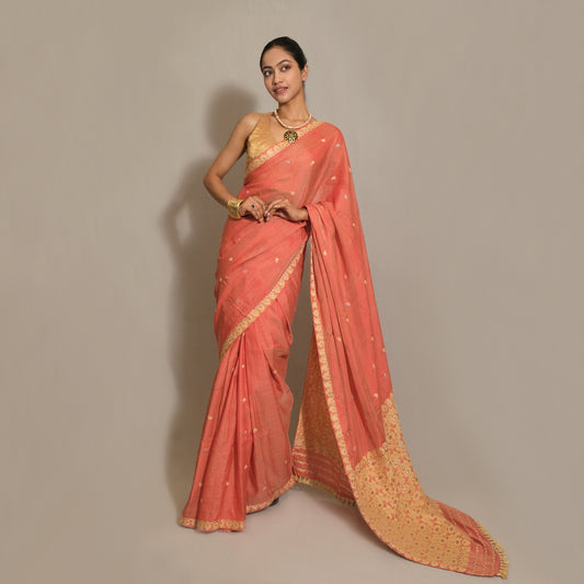 This saree combines luxurious Kesapat Mulberry silk with soft cotton, offering a harmonious blend of...