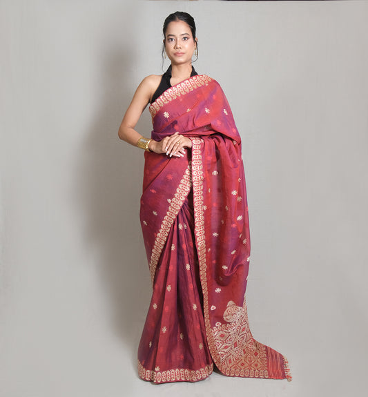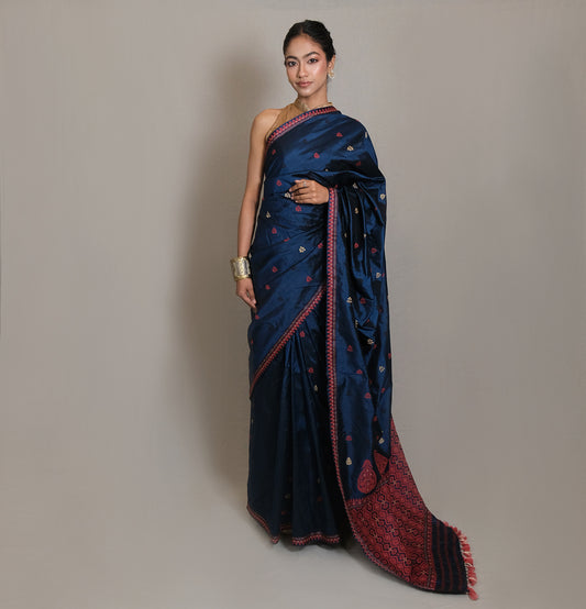 Saree - Mulberry silk & cotton, motifs in Muga ghisa