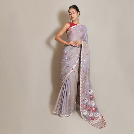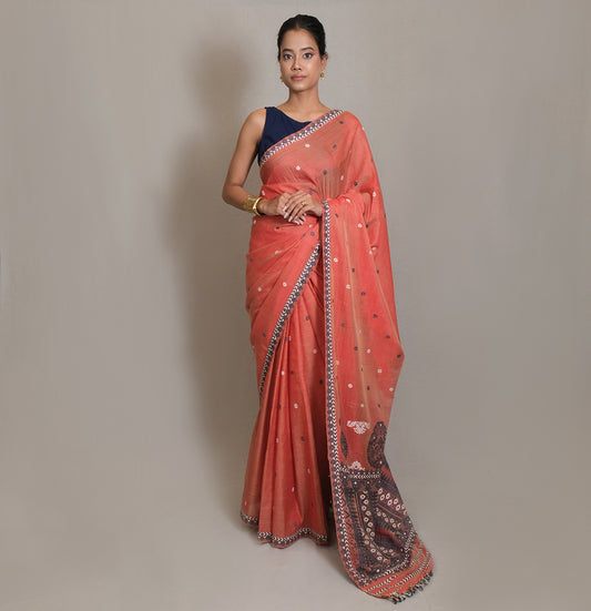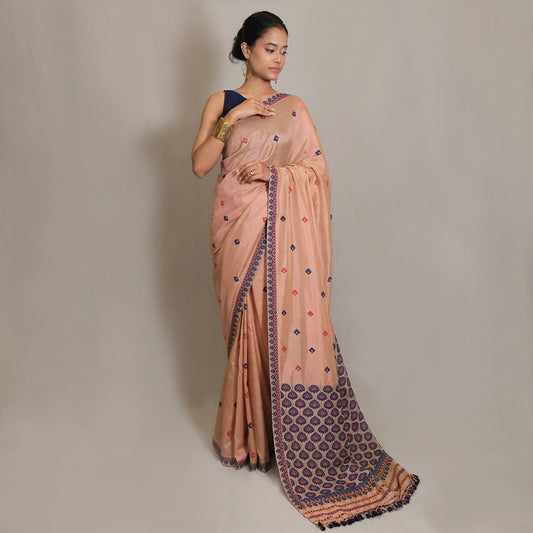 Expertly crafted Saree in Mulberry silk & Eri silk blend, adorned with delicate cotton motifs....