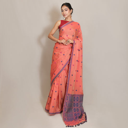 Saree - Eri silk & cotton, motifs in cotton