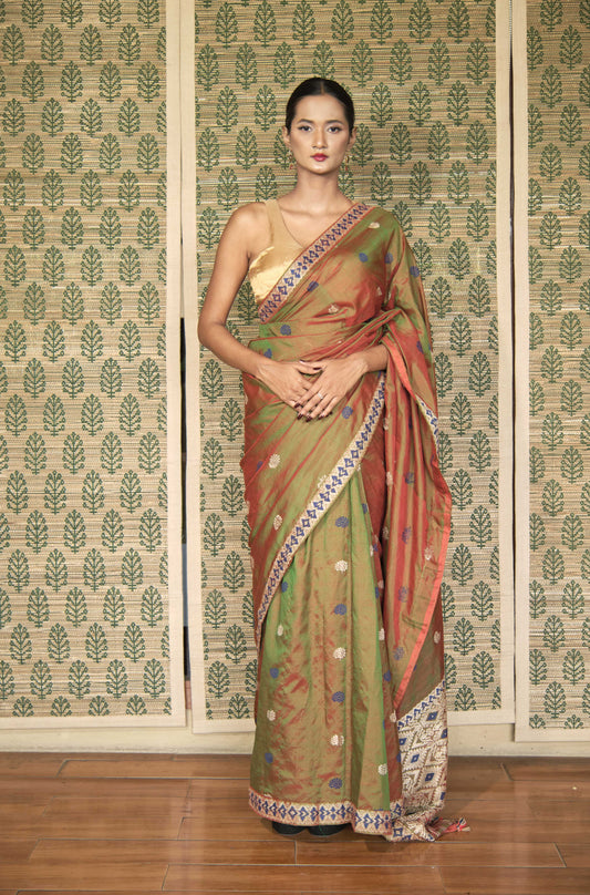 Saree - Mulberry silk & cotton motifs in Muga ghisa & Eri silk natural dye