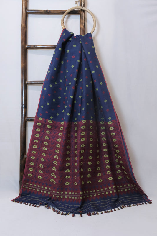 Saree - Mulberry silk (Nuni Silk) & cotton motifs in Eri silk natural dye