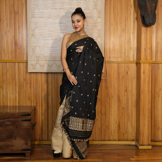 Single Sador - Mulberry silk & cotton, motifs in muga ghisa
