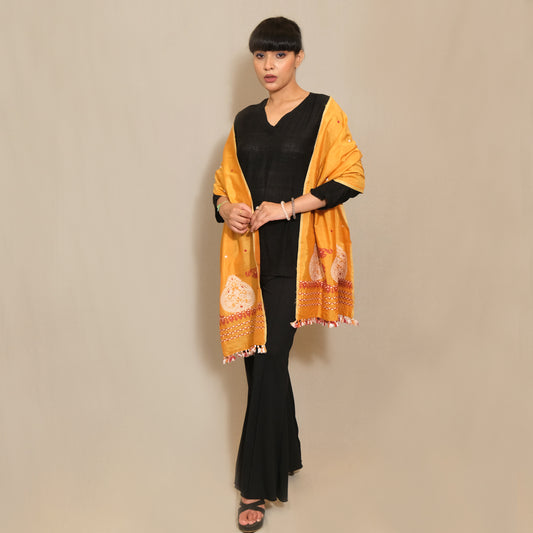 This exquisite stole combines the natural elegance of Kesapaat silk (Mulberry) with the breathable comfort...