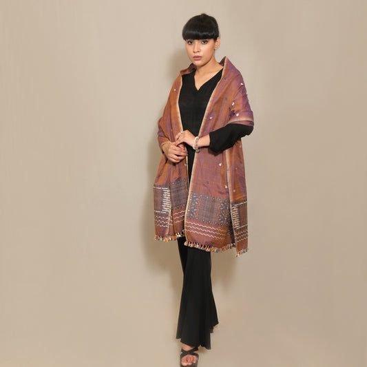 This stole combines luxurious Kesapat silk (Mulberry) with soft cotton, offering a refined balance of...