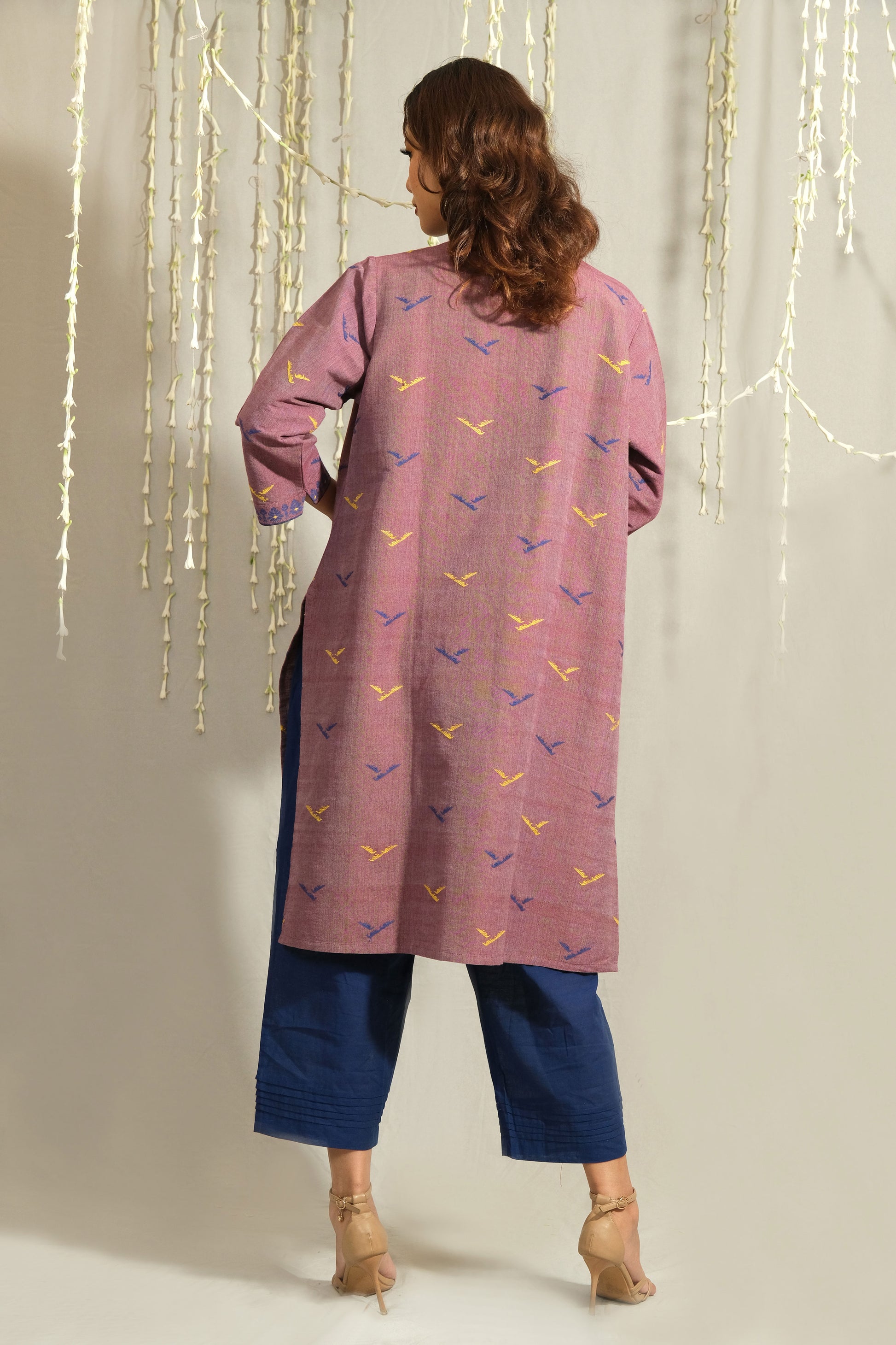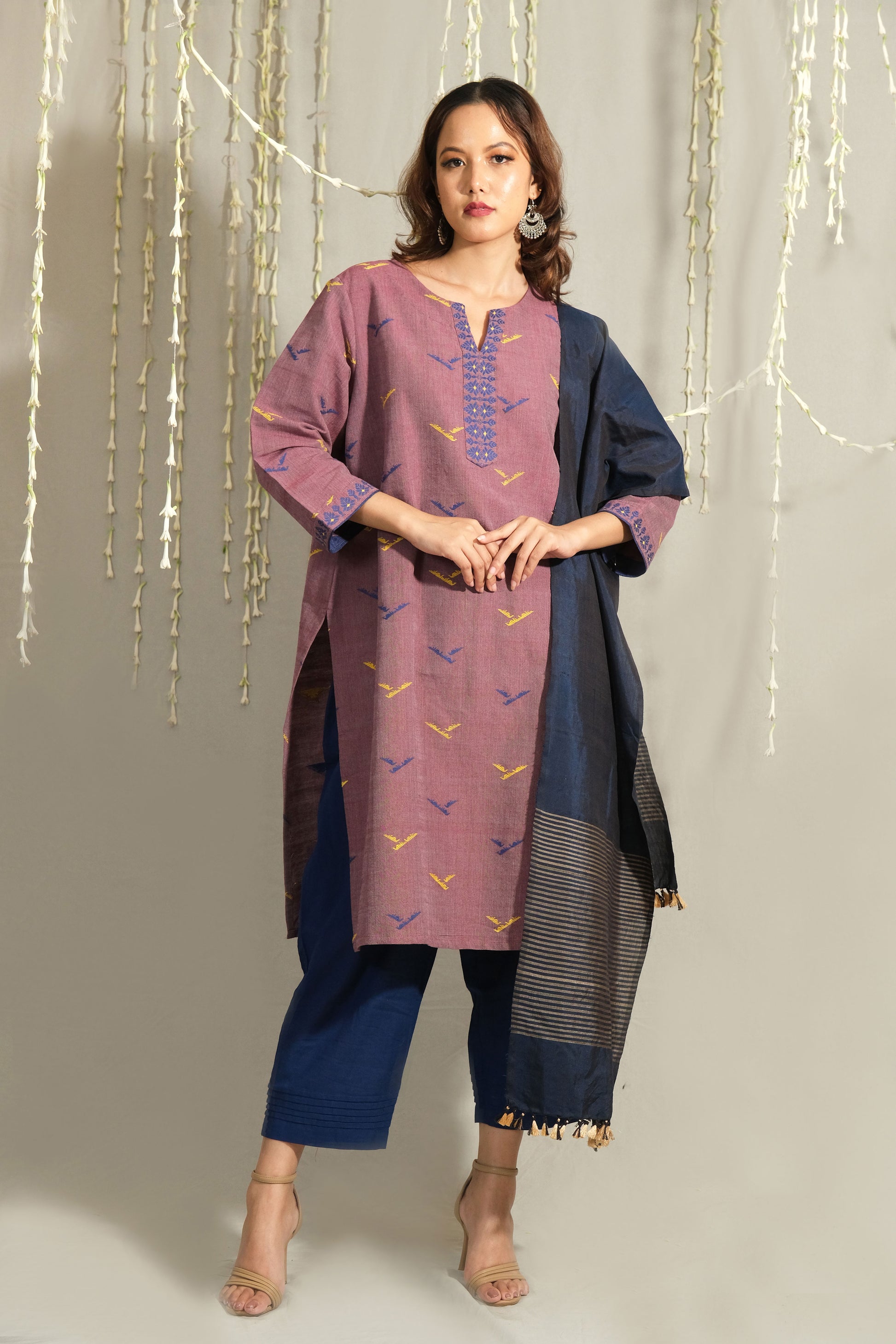 Expertly crafted with natural Eri Silk dye, this Kurta features intricate silk motifs. The Eri Silk fabric is known for its softness and durability, providing both style and comfort. Elevate your wardrobe with this unique and sustainable piece.