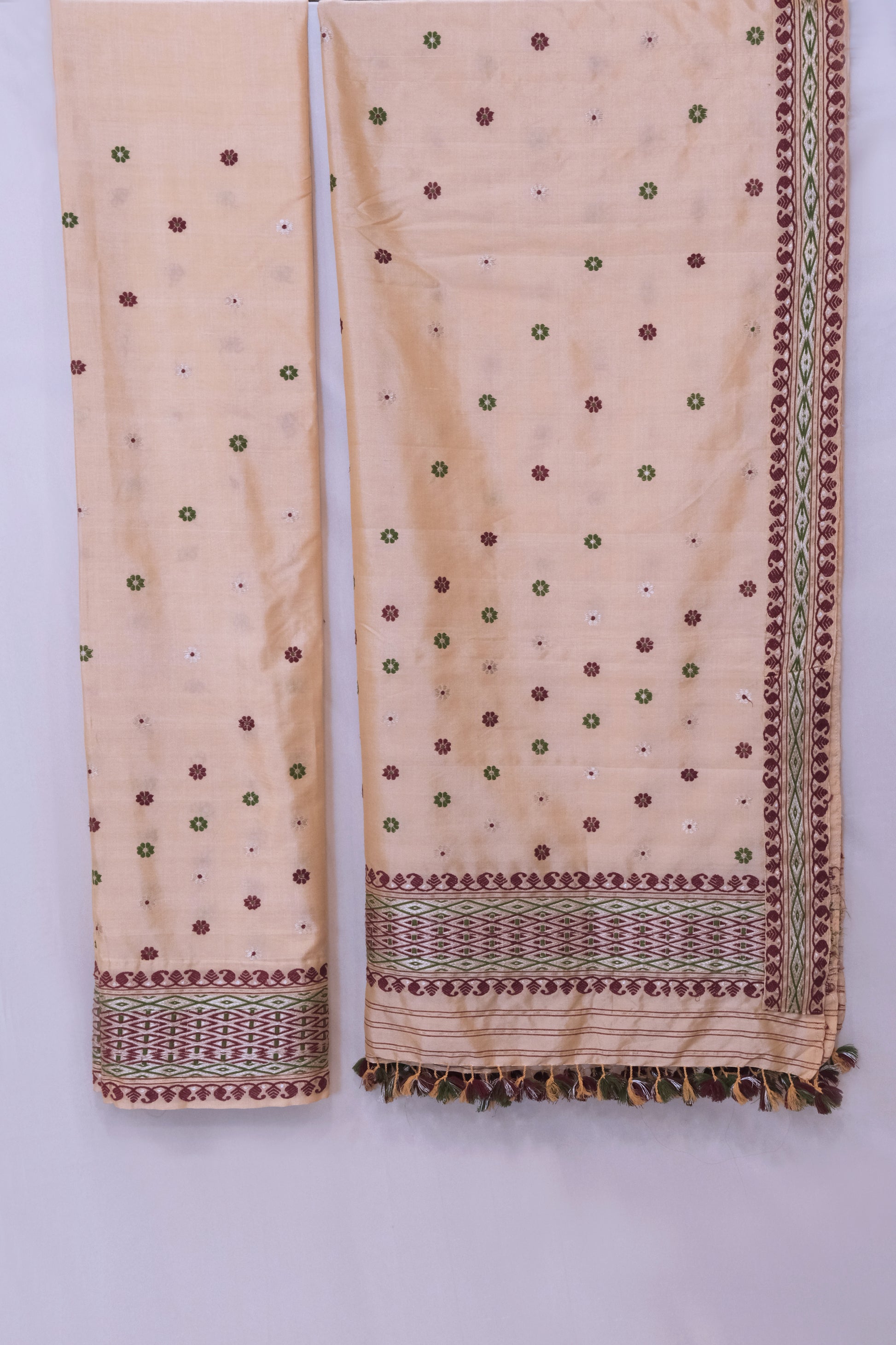 Mekhela Sador - Mulberry silk & cotton motifs Eri silk natural dye & silver zari