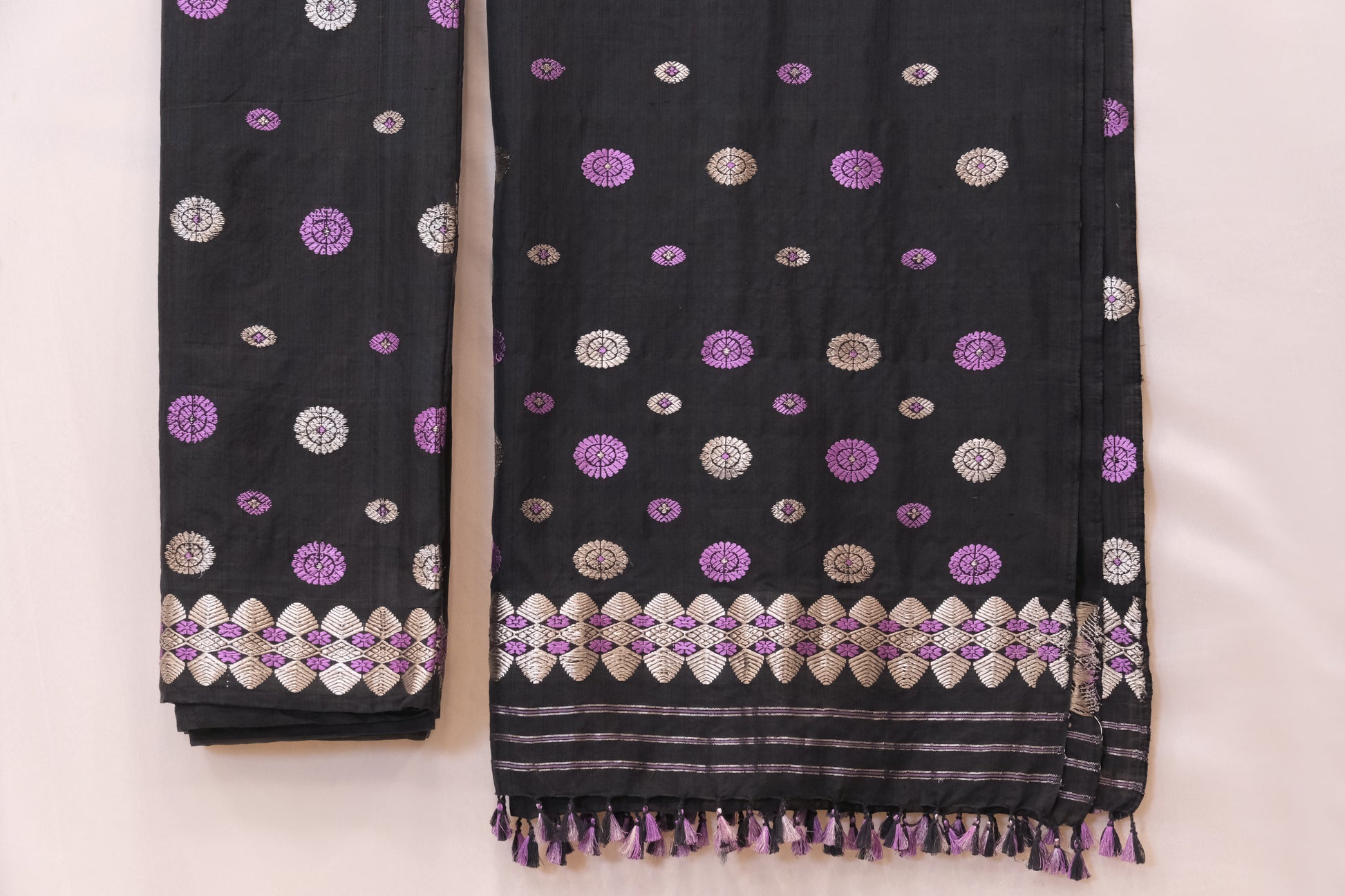 Mekhela Sador - Mulberry silk motifs in silver zari