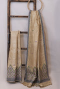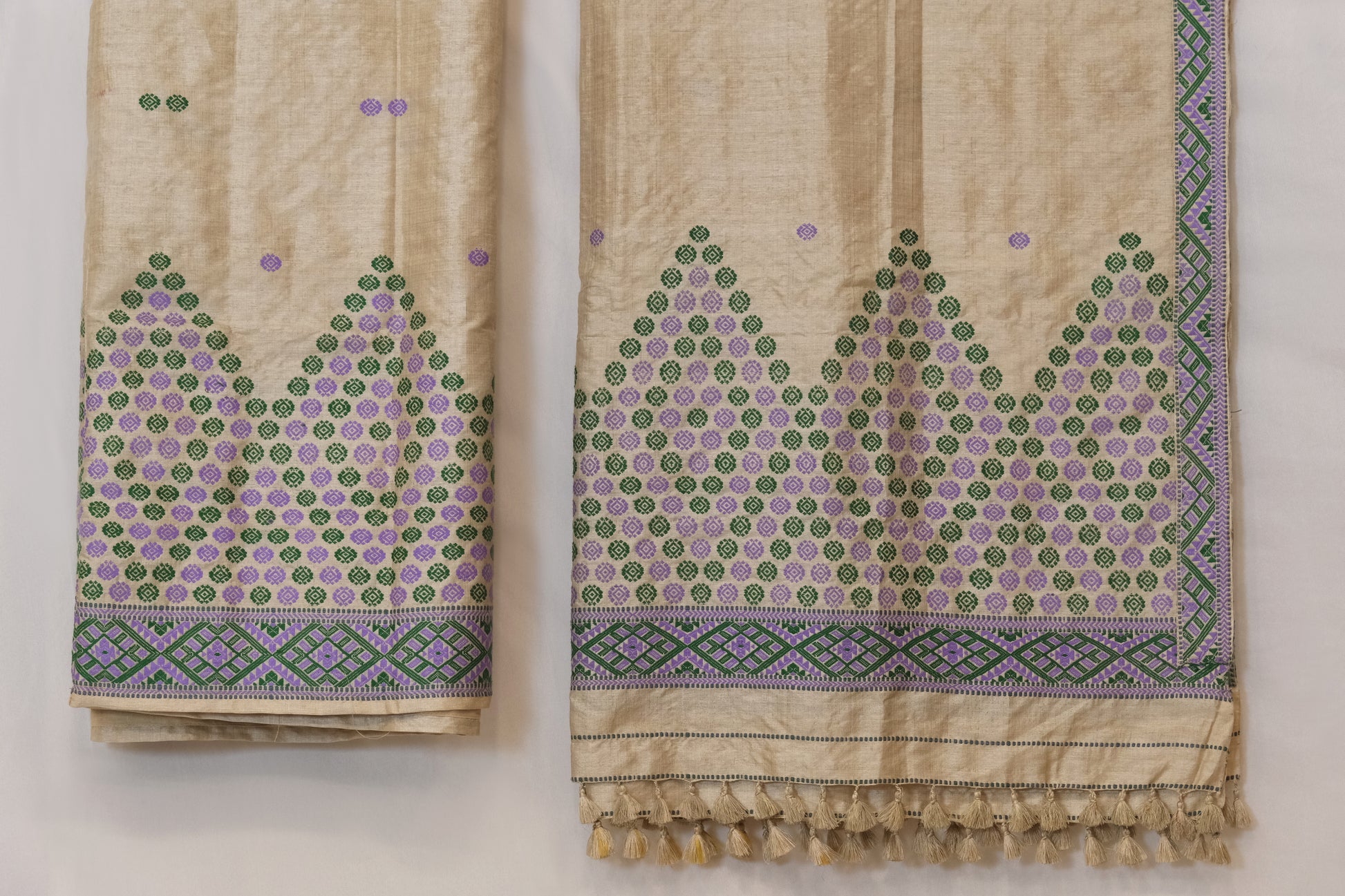 Mekhela Sador - Tassar silk & Muga silk motifs in cotton