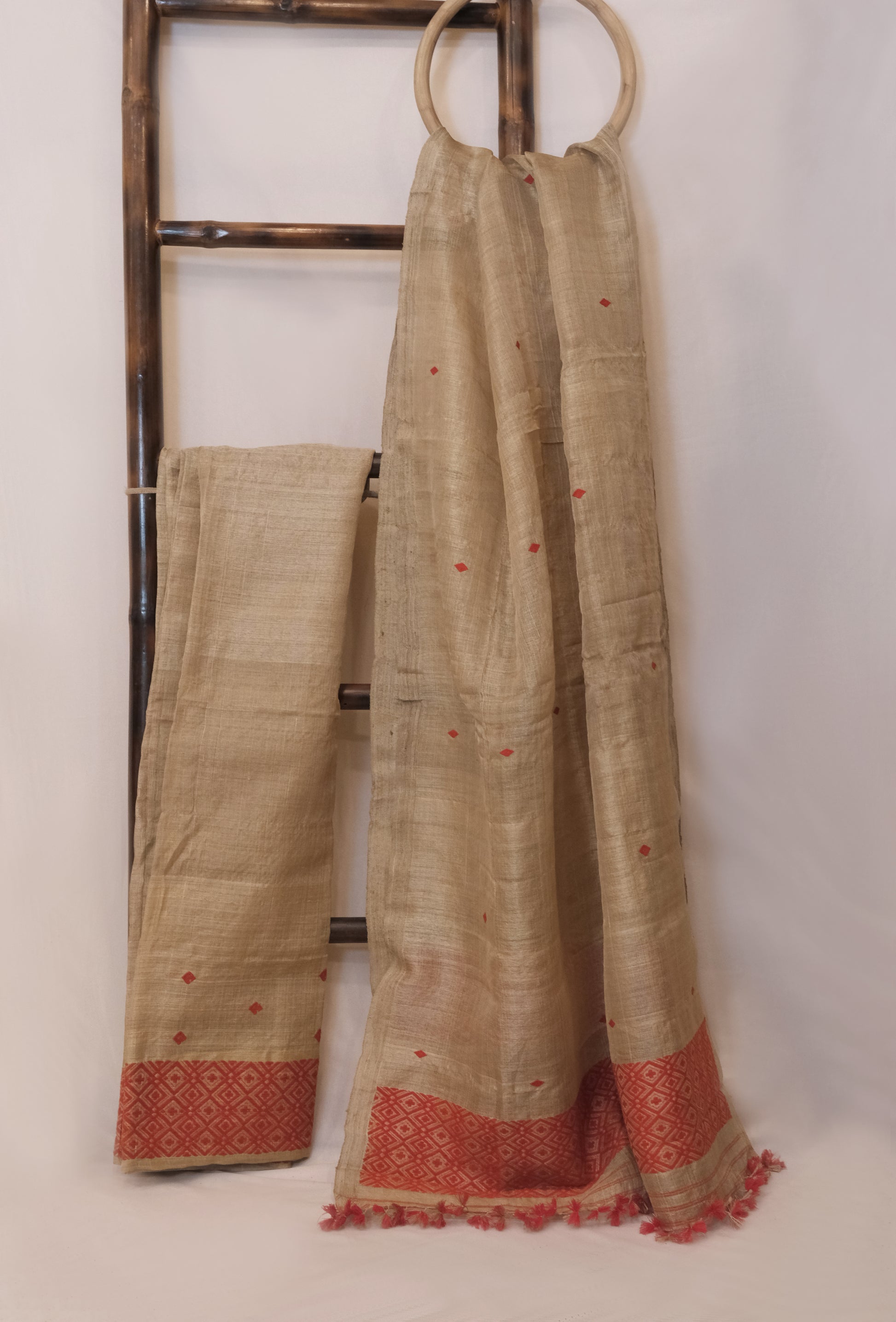 Mekhela Sador - Muga silk motifs in Eri silk natural dye