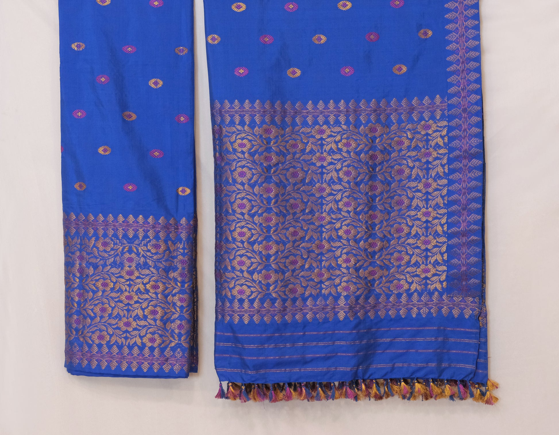 This Mekhela Sador features a traditional design made of luxurious Mulberry silk and soft cotton motifs. The combination of these materials ensures both comfort and elegance, making it a perfect addition to any wardrobe. Expertly crafted with precision and attention to detail, this Mekhela Sador is a must-have for any fashion enthusiast.
