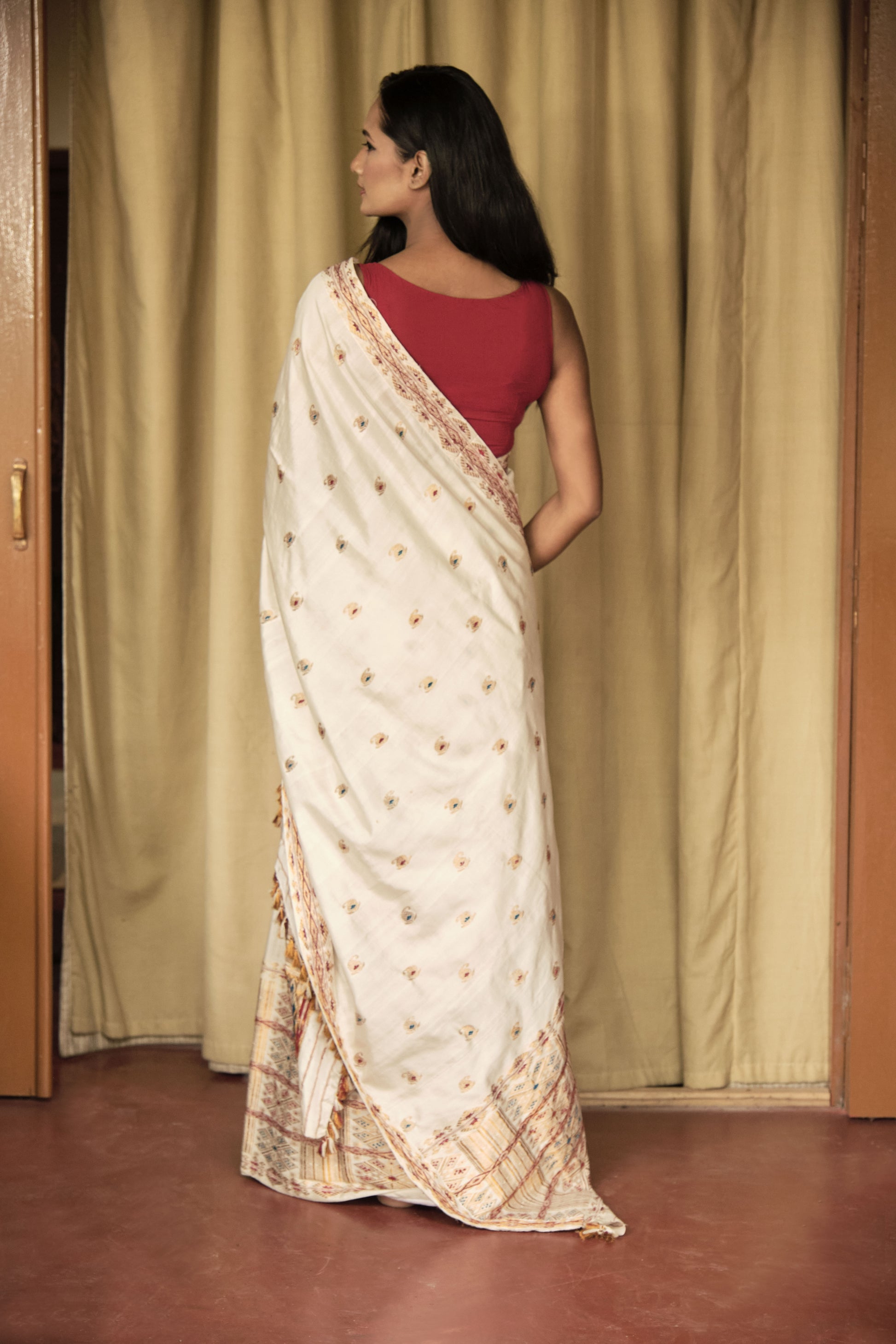 Mekhela Sador - Mulberry silk & cotton, motifs in golden zari