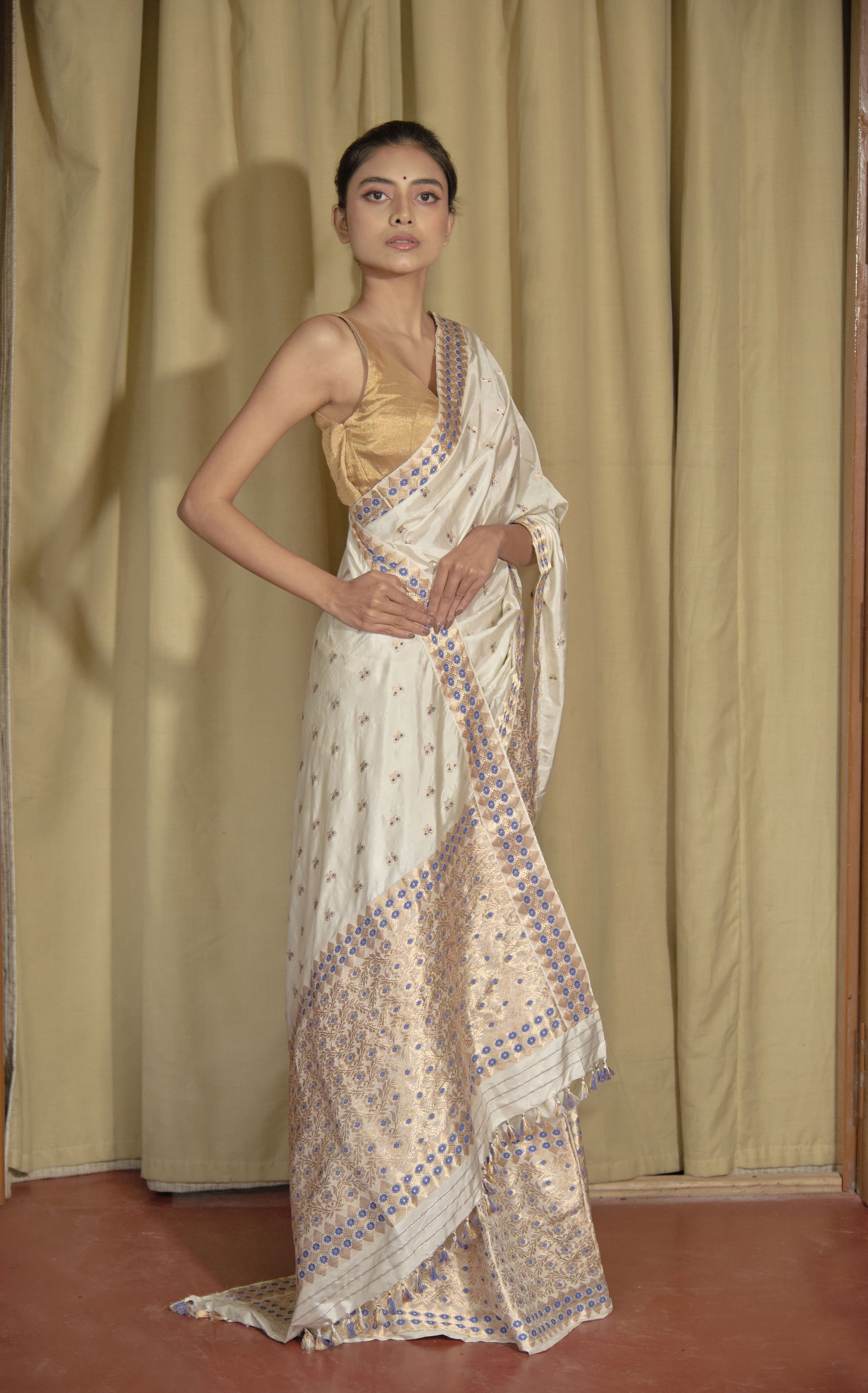 Mekhela Sador - Mulberry silk & cotton, motifs in golden zari