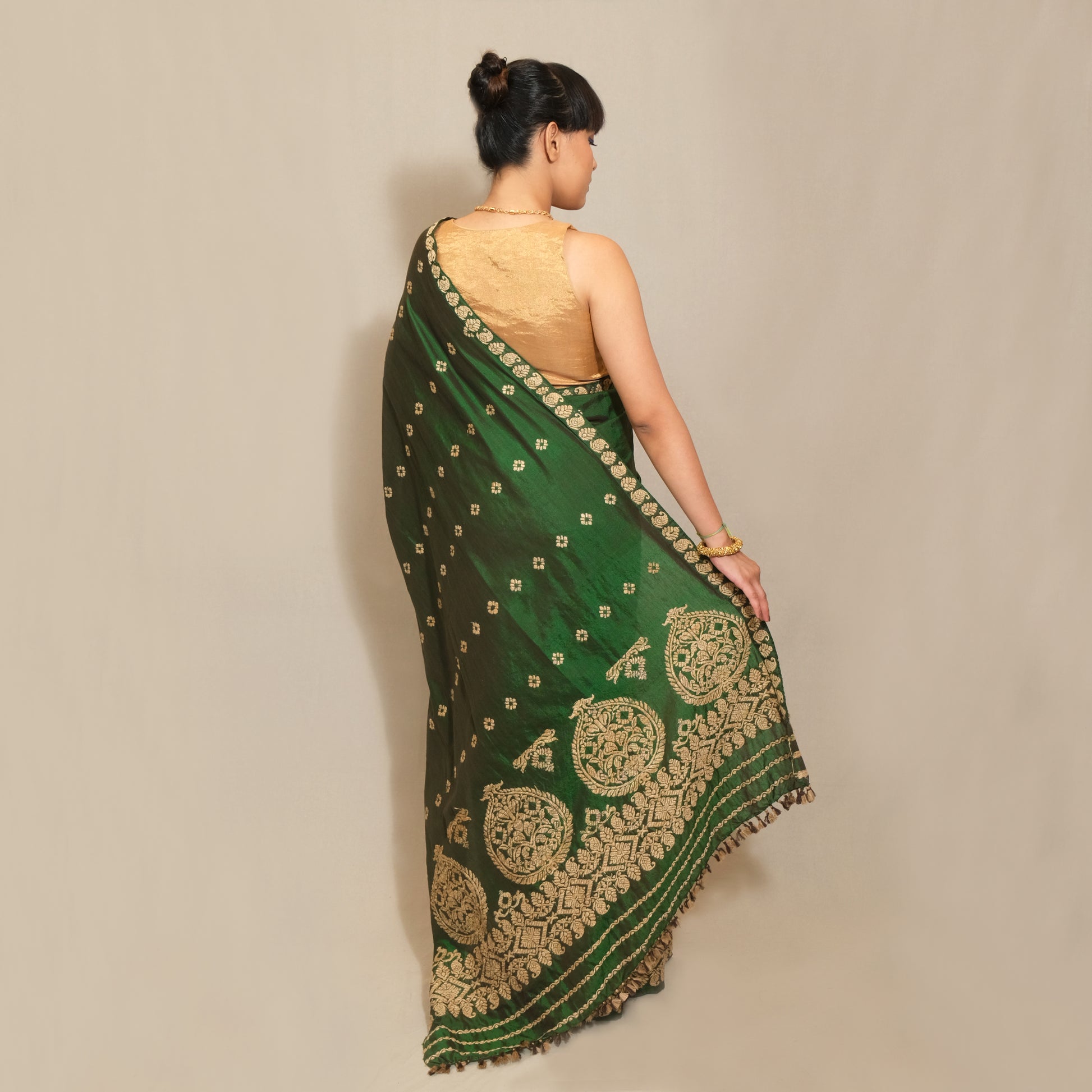 The Mekhela Sador in Paat silk and cotton blends traditional elegance with everyday comfort. This attire combines the lustrous appeal of Paat silk with the breathable softness of cotton, creating a balanced fabric ideal for both festive occasions and casual wear. Expertly woven, it offers durability and a graceful drape, reflecting the rich heritage of Assamese textile craftsmanship. Perfect for those seeking a versatile and authentic ethnic ensemble.