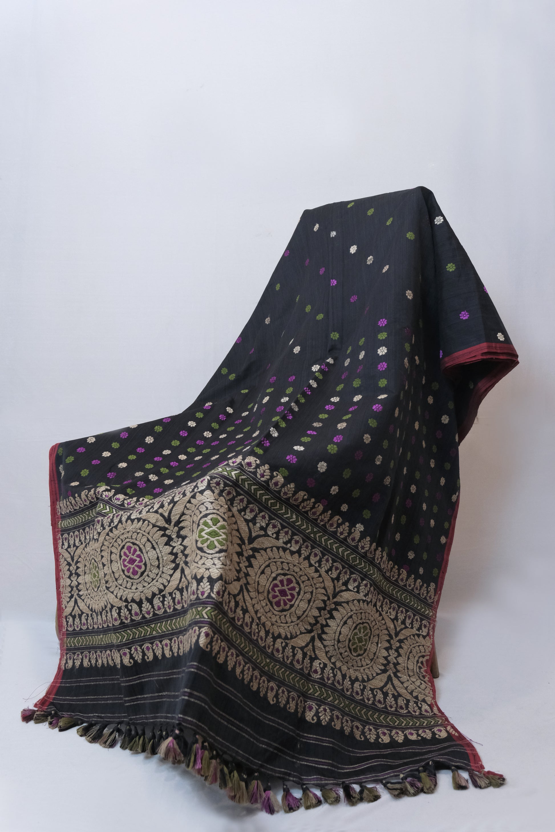 Expertly crafted from high-quality Mulberry silk, this Saree features stunning Kesapaat motifs woven in lustrous Muga ghisa silk. Soft, luxurious, and perfect for any occasion, this saree is a must-have for anyone looking to add a touch of elegance to their wardrobe.