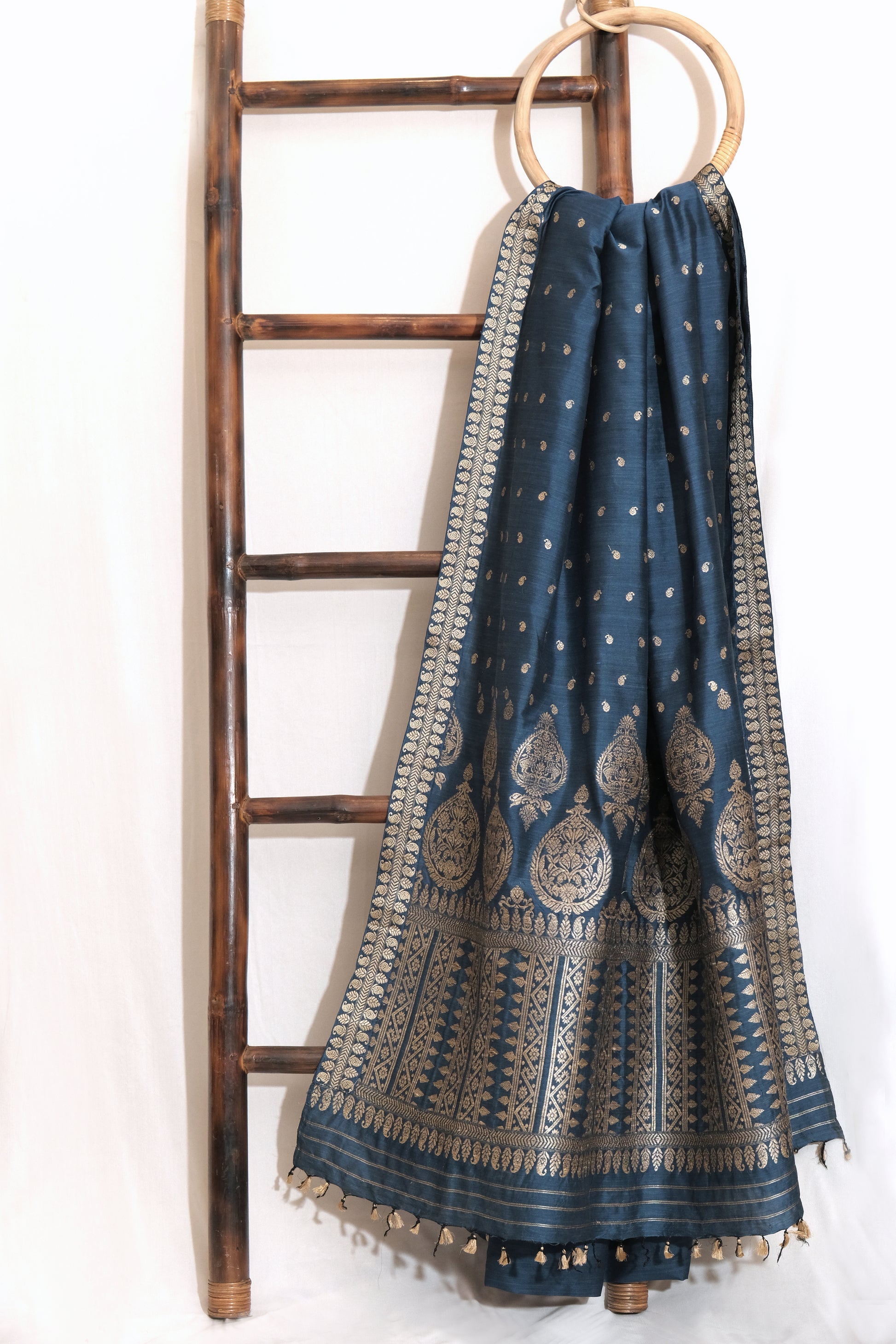 Saree - Mulberry silk motifs in Muga silk
