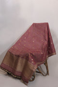 Saree - Tassar silk & Eri silk natural dye motifs in golden zari & Tassar silk