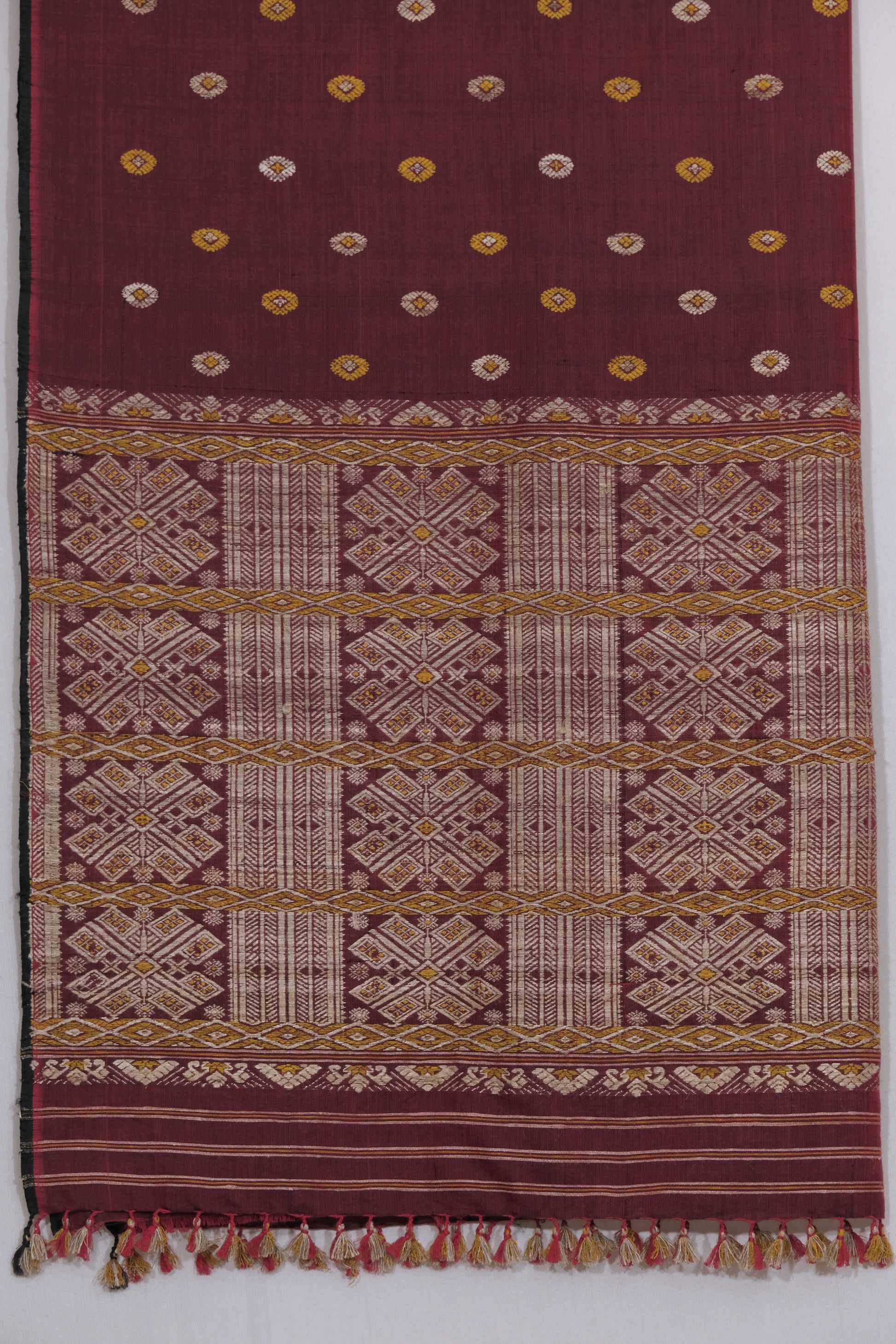 Saree - Mulberry silk & cotton motifs in Muga ghisa silk & Eri silk natural dye