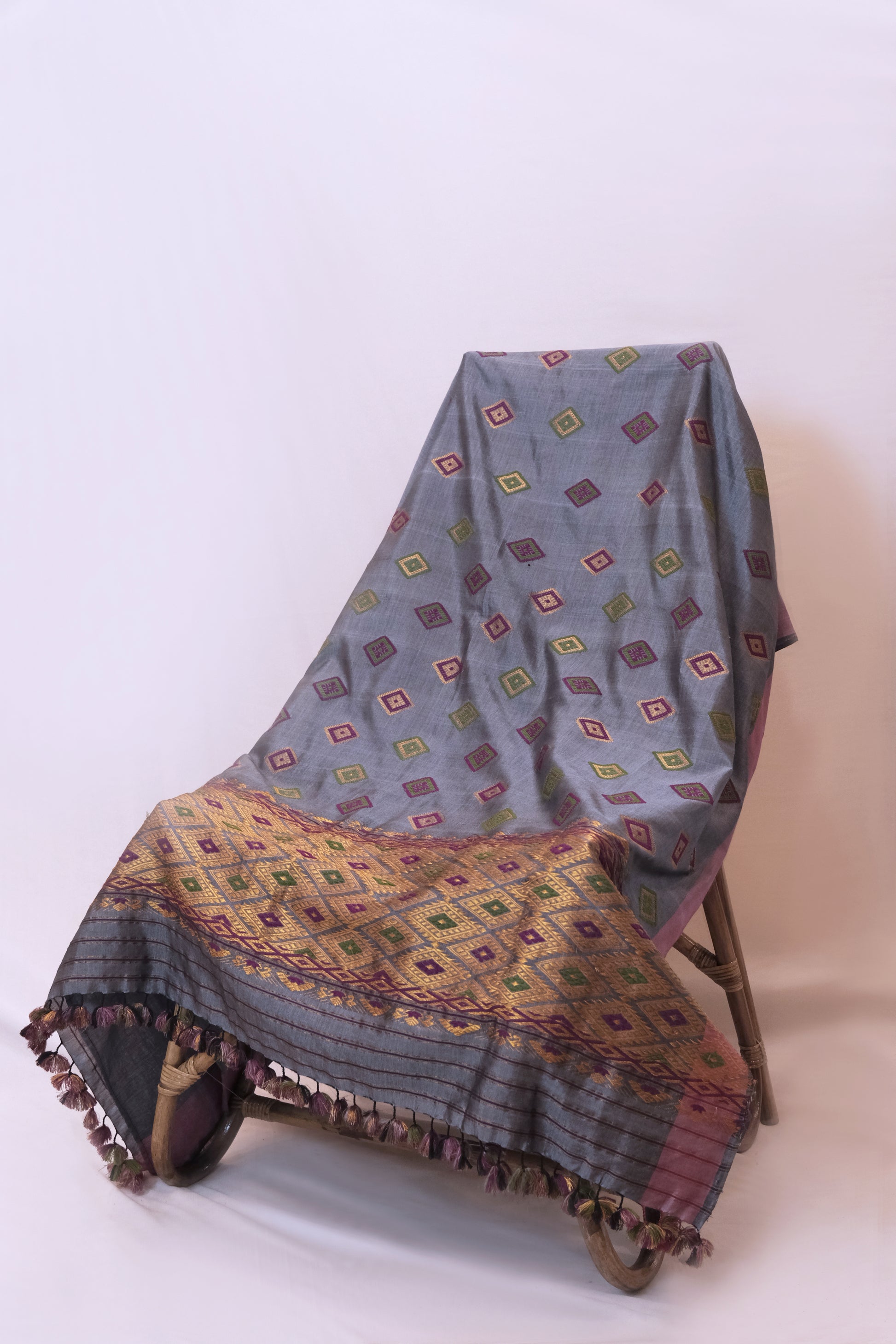 Upgrade your saree collection with this elegant piece. Made with a blend of Mulberry silk and cotton, featuring exquisite motifs with golden zari detailing. Experience the luxurious feel and style of this saree and stand out at any occasion.