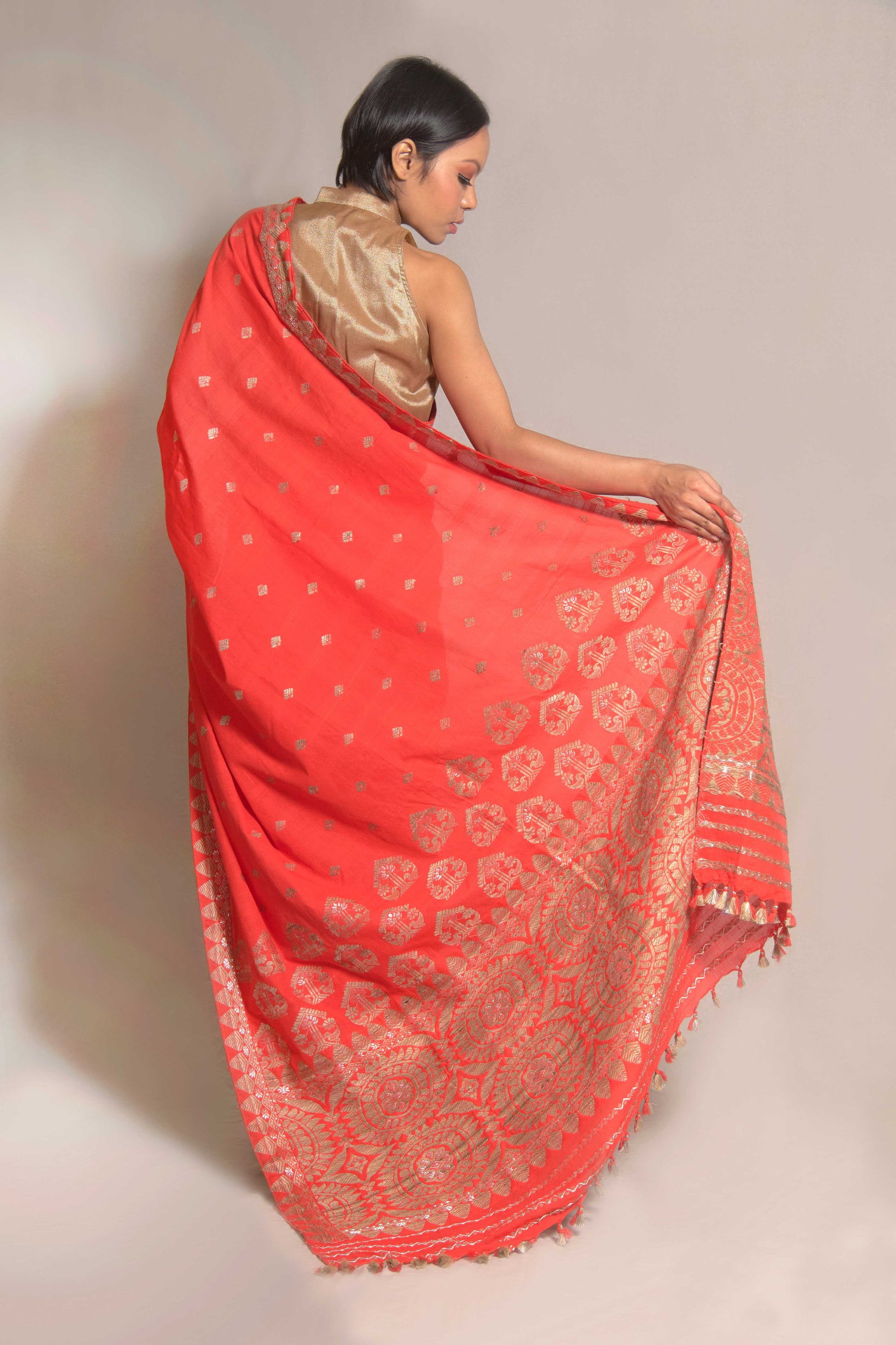 Expertly crafted with traditional techniques, this Saree features intricate cotton motifs in Muga ghisa and shimmering silver zari. With its high quality materials and elegant design, this Saree is sure to elevate any outfit and make you stand out in style.