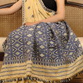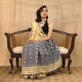 This saree showcases a refined blend of lustrous Mulberry silk and breathable cotton, offering a harmonious balance of elegance and comfort. The Mulberry silk imparts a smooth, glossy texture while the cotton provides lightness and durability. Expertly woven, it delivers a graceful drape ideal for both formal events and everyday sophistication.