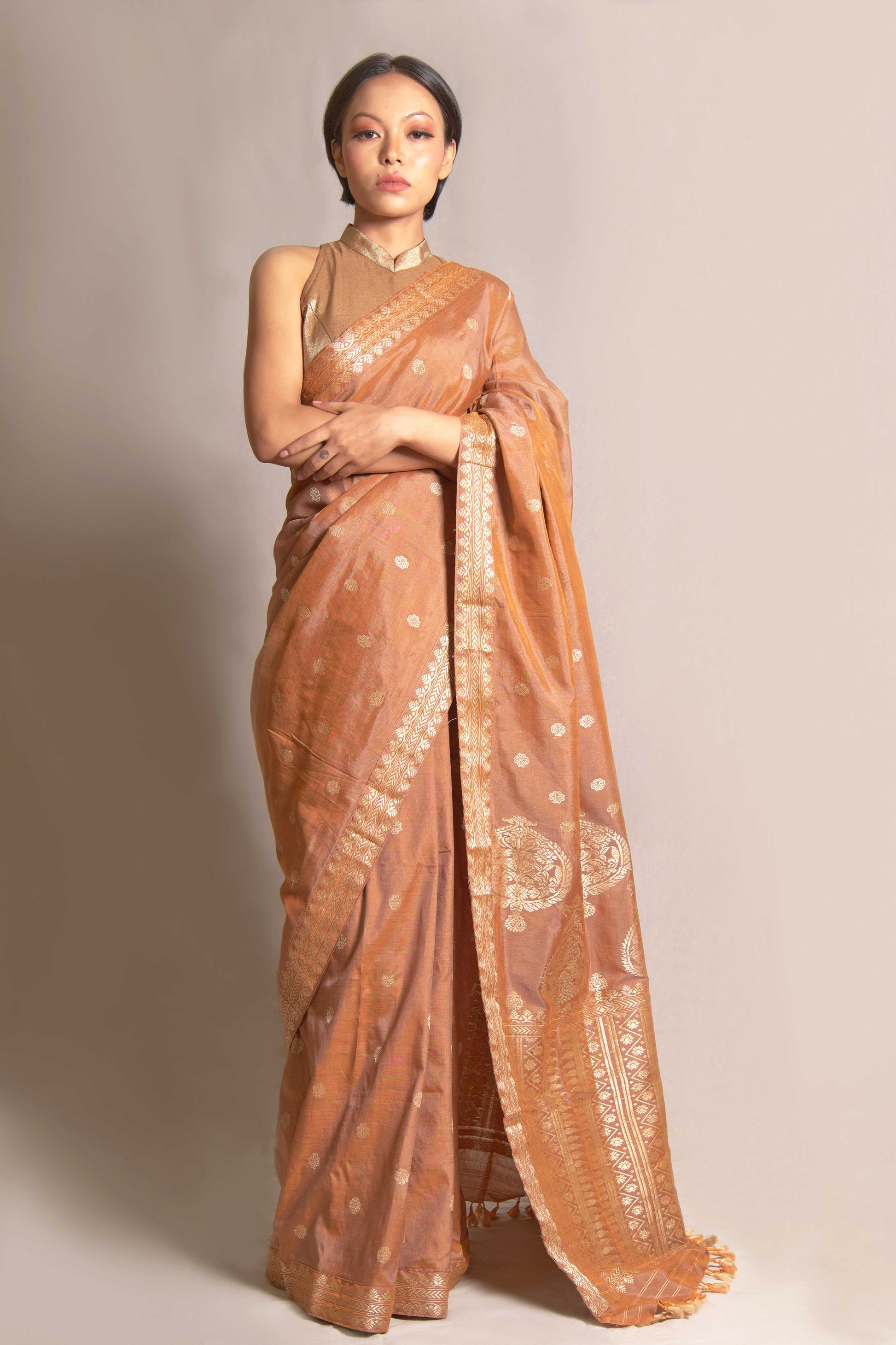 Saree - Mulberry silk & cotton, motifs in Tassar silk