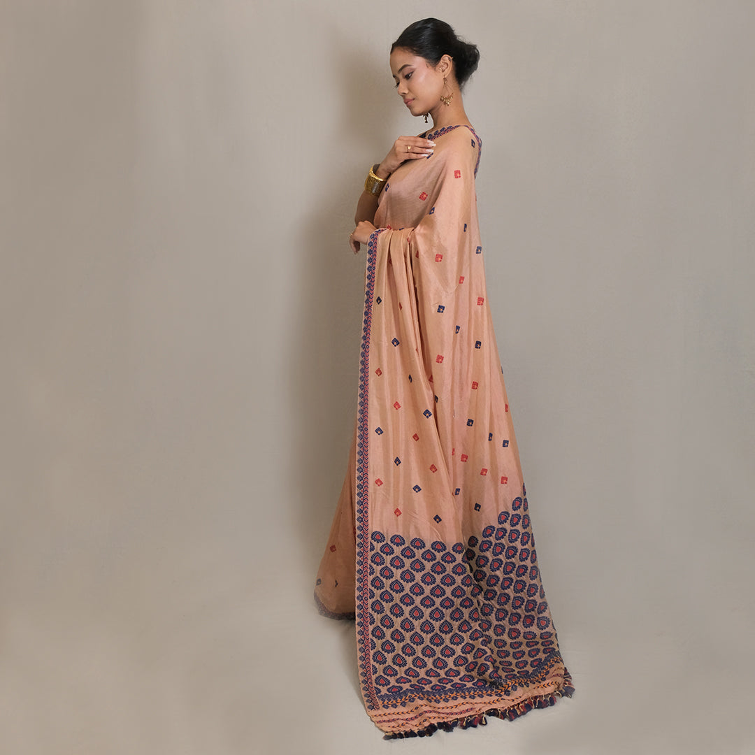Saree - Mulberry silk & cotton, motifs in Eri silk