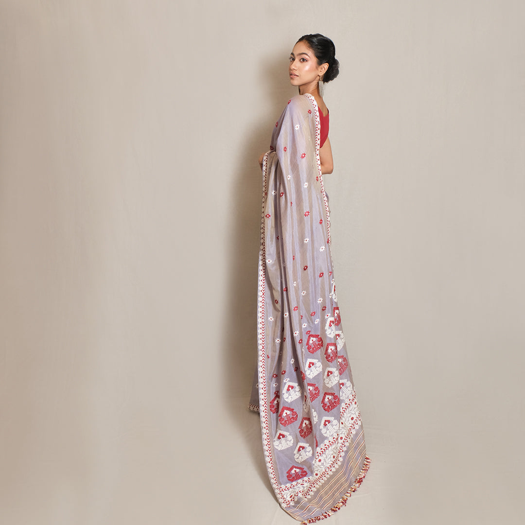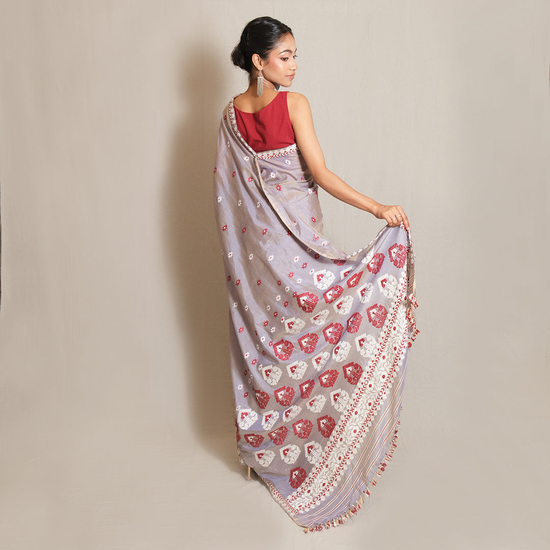 Saree - Mulberry silk & cotton, motifs in Eri silk