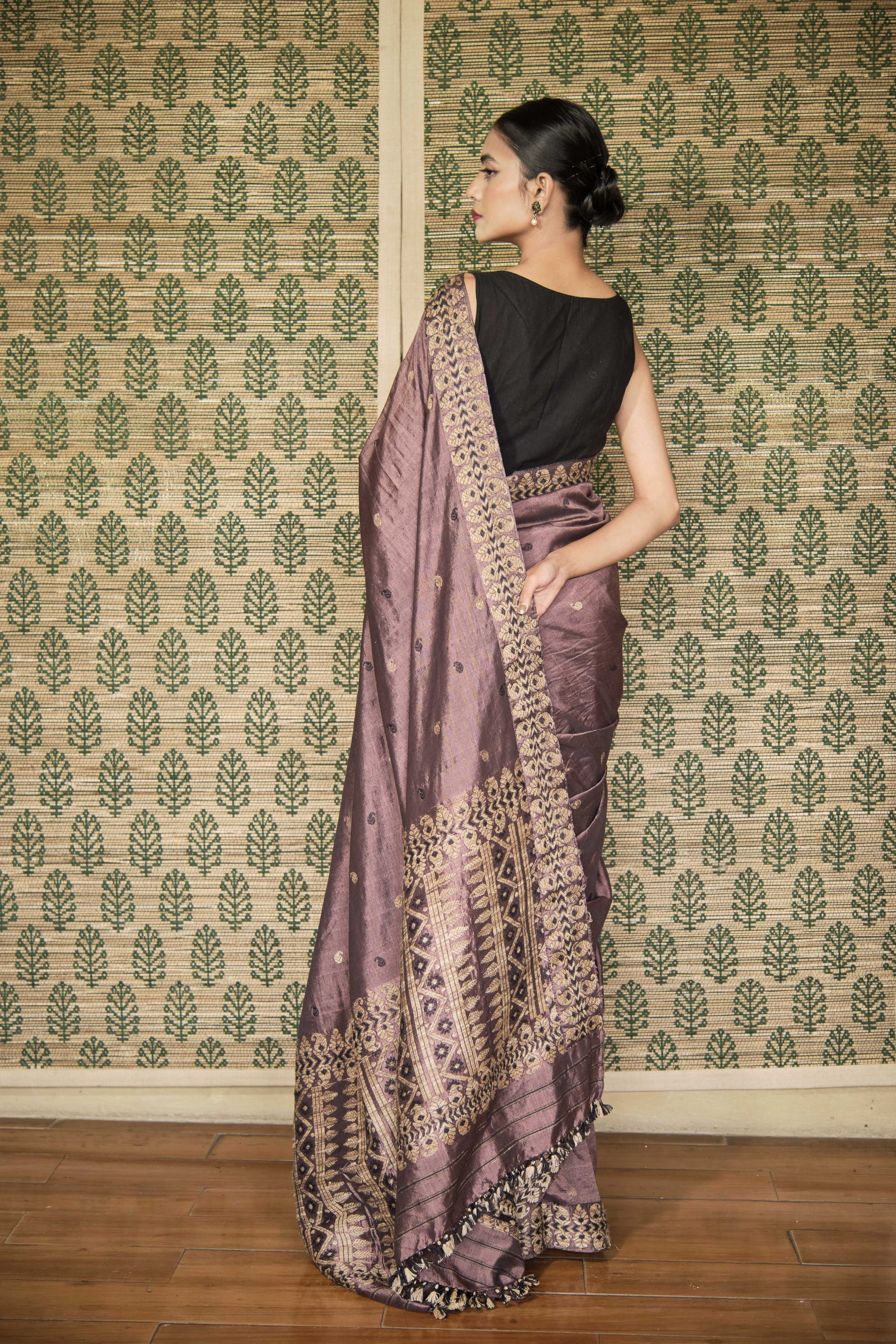 Expertly crafted from a blend of luxurious mulberry silk and soft cotton, this saree features stunning muga ghisa motifs. With its delicate textures and intricate designs, this saree is perfect for those seeking a sophisticated and elegant look. Elevate any occasion with this beautiful, handcrafted piece.