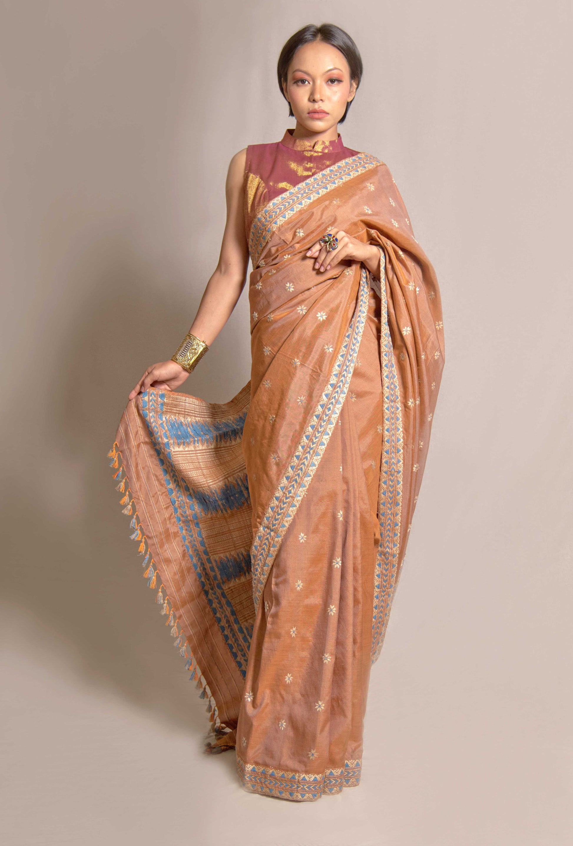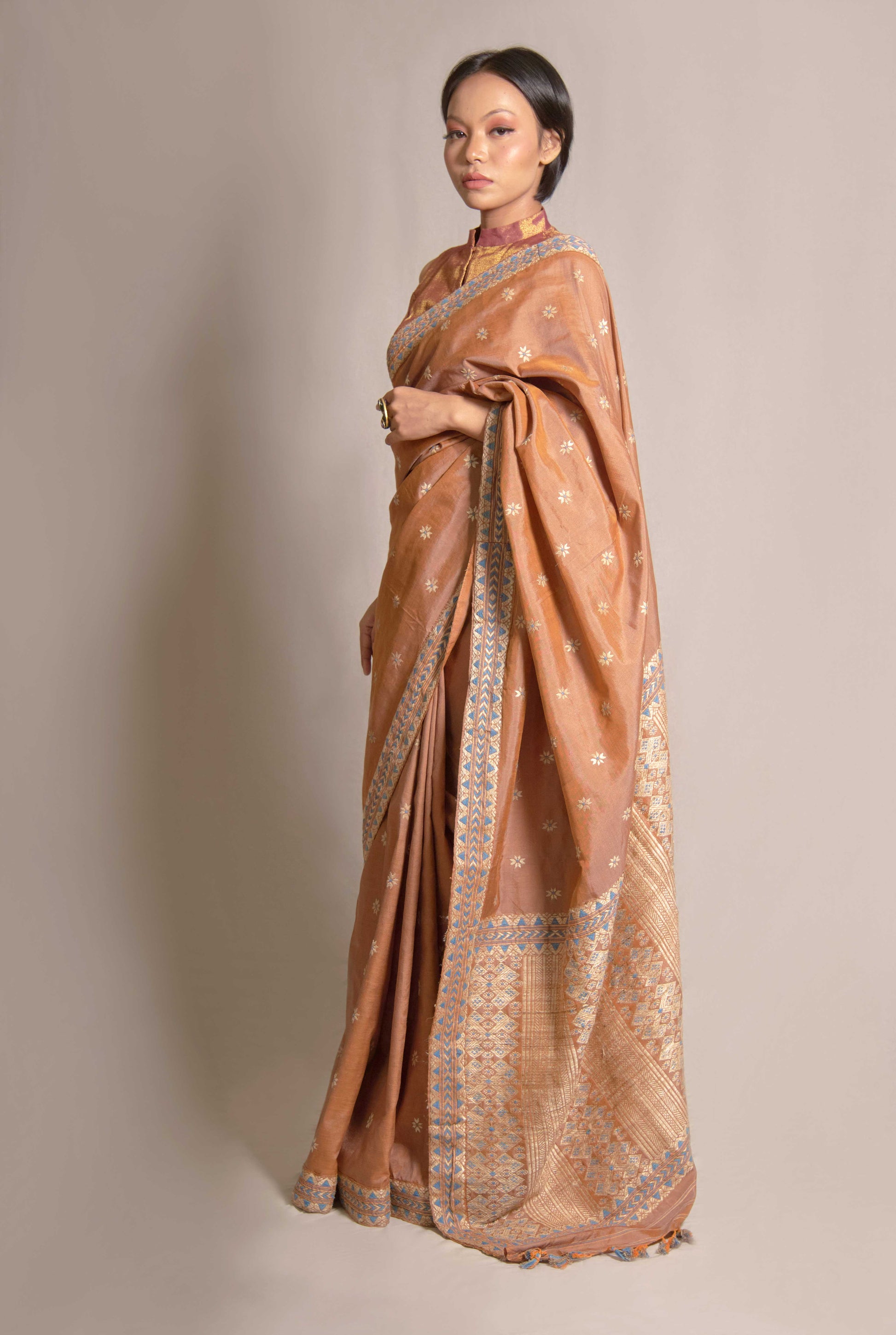 Saree - Mulberry silk & cotton motifs in Muga ghisa & Eri silk natural dye