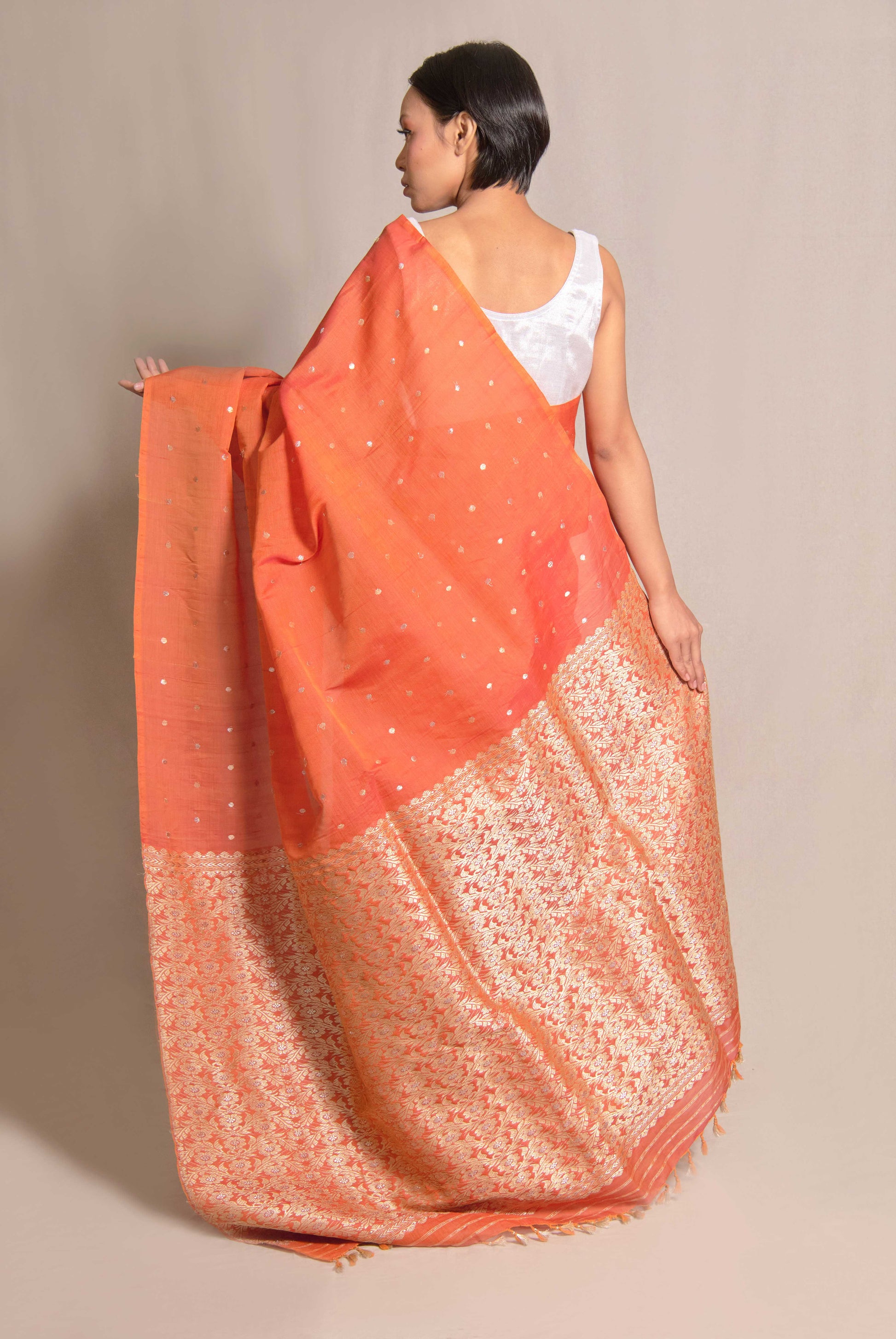 This Saree is crafted from luxurious mulberry silk with intricate kesapat motifs in Tassar silk and silver zari, creating a stunning and sophisticated look. Made from high-quality materials, this saree offers exceptional comfort and style, perfect for any occasion. Elevate your wardrobe with this elegant piece.