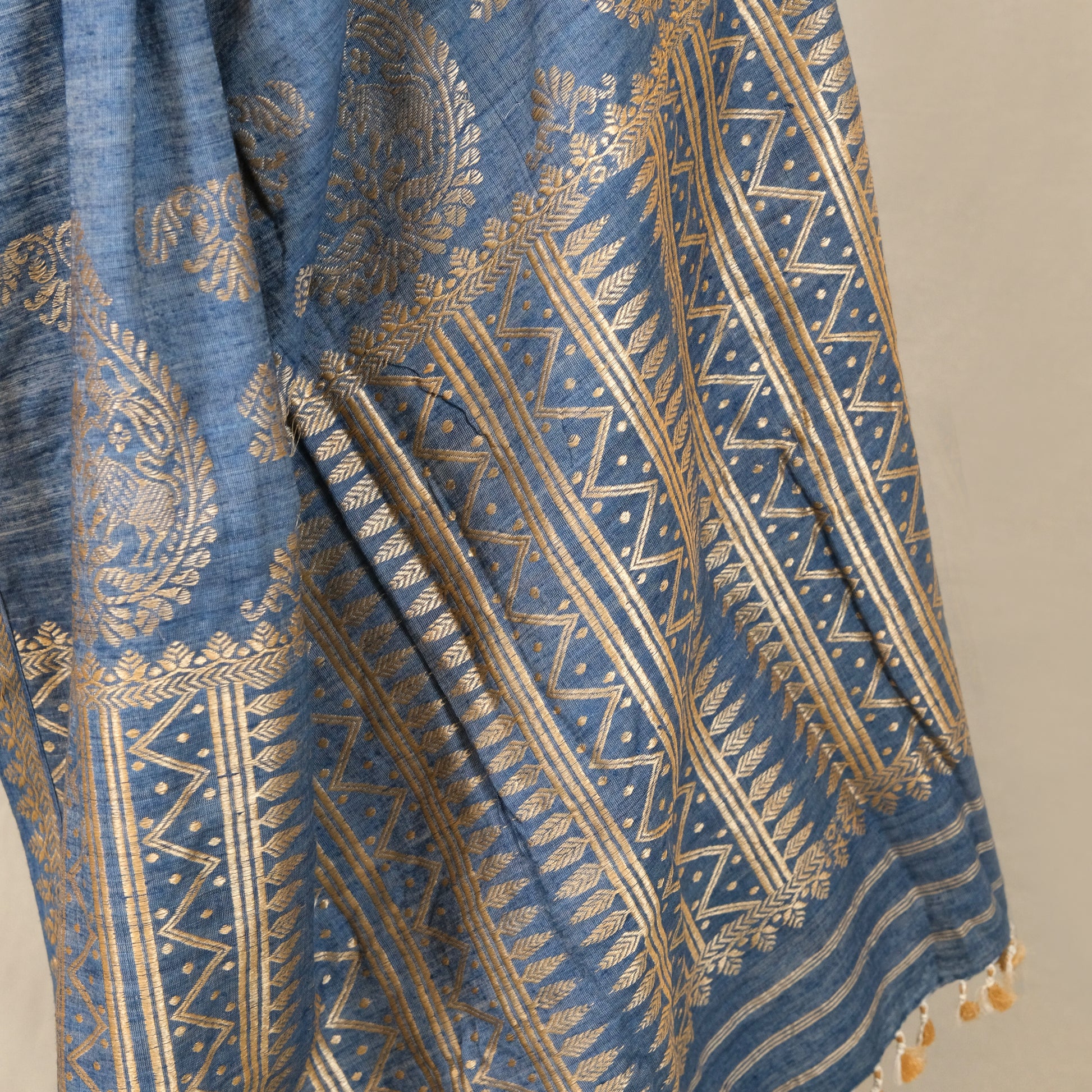 Discover understated elegance in this naturally dyed eri silk saree, where eco-conscious craftsmanship meets timeless beauty. The paat showcases eri silk's characteristic soft texture and subtle earthiness, enhanced by natural dyes that create organic, nuanced color variations. Delicate motifs rendered in lustrous muga silk provide striking visual interest and a gentle shimmer that catches light beautifully. Eri silk's breathability and hypoallergenic properties make this piece exceptionally comfortable for extended wear, while the natural dye process ensures a sustainable, environmentally responsible choice. Perfect for those seeking authentic artisanal quality with a conscious approach to fashion—a versatile investment that celebrates traditional weaving heritage and natural beauty.
