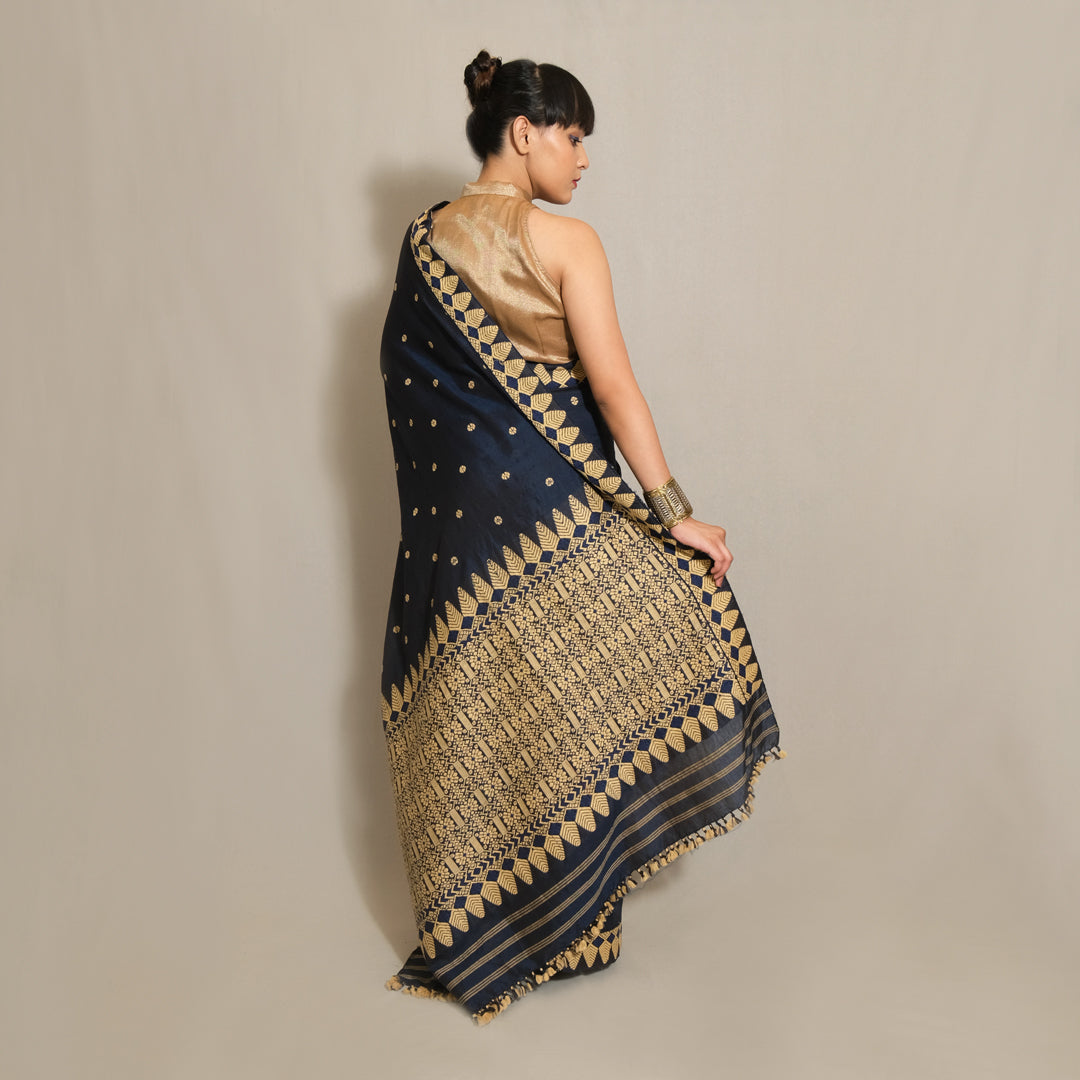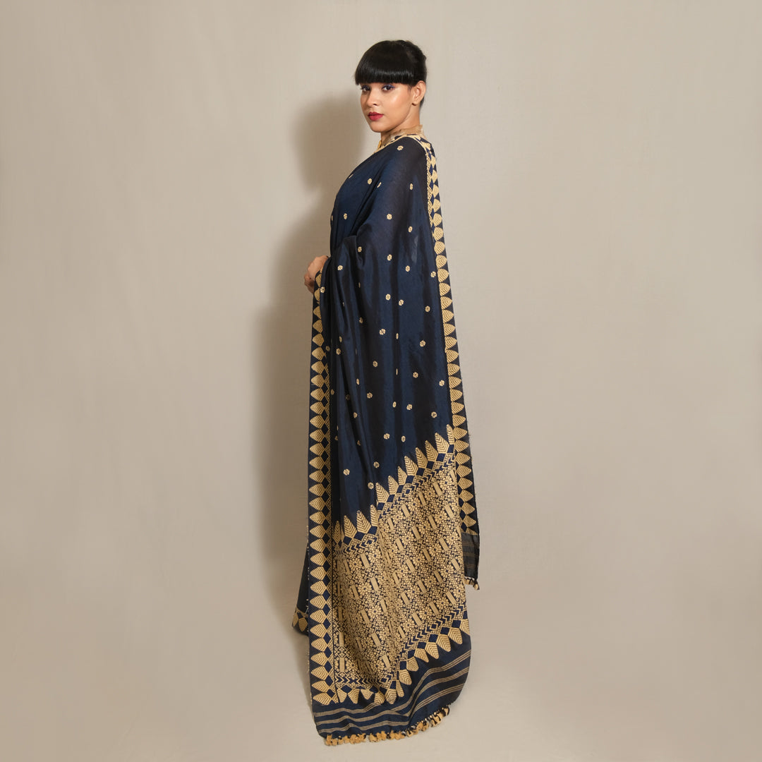 This saree features a refined blend of Paat silk and cotton, combining the durability and subtle sheen of silk with the softness and breathability of cotton. Its expertly woven fabric offers a comfortable yet elegant drape, suitable for both formal occasions and everyday wear. The traditional craftsmanship ensures a timeless piece that enhances your wardrobe with understated sophistication.