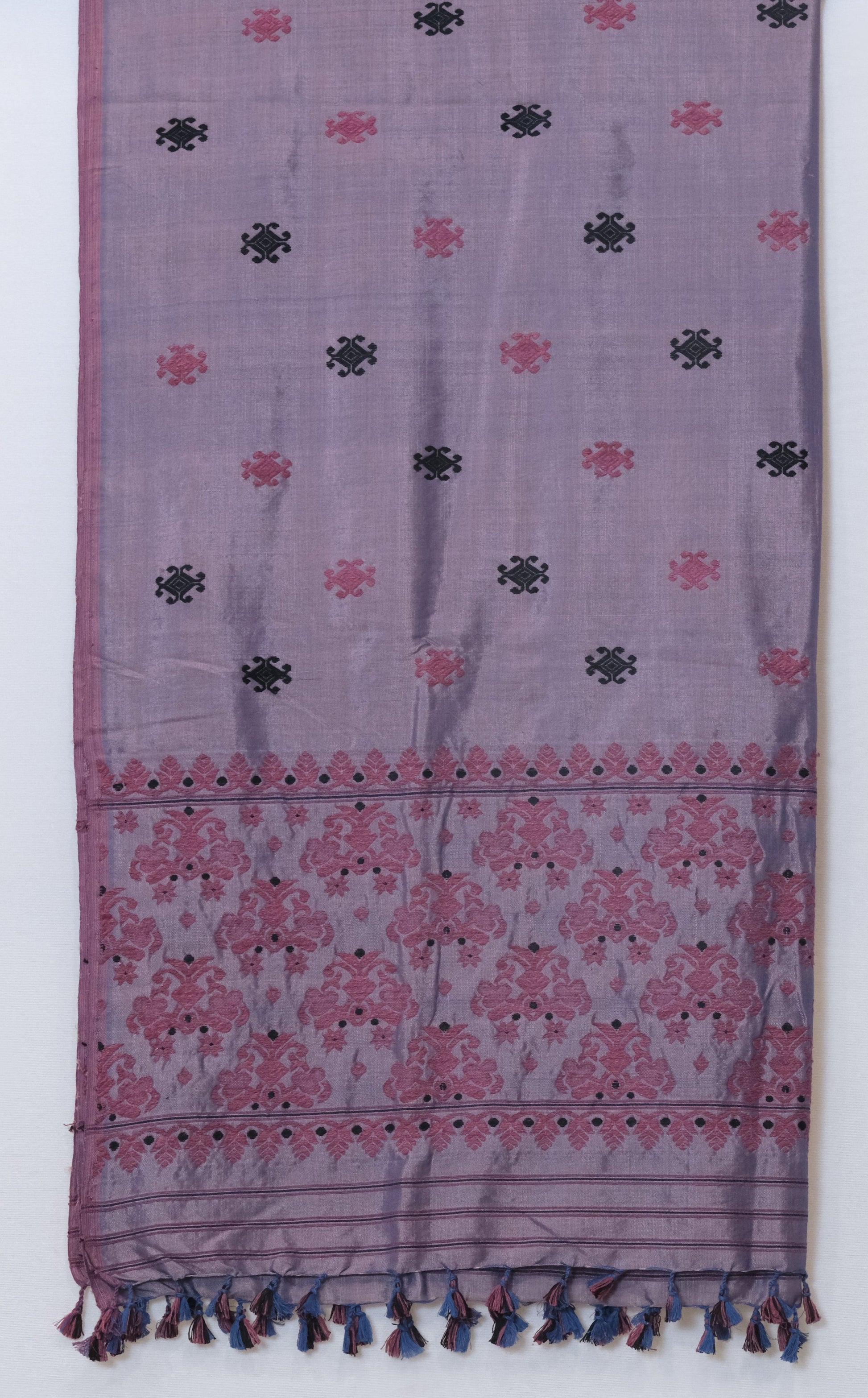 Crafted with luxurious Mulberry silk and adorned with intricate Eri silk motifs, this Single Sador is a testament to the artistry of natural dyeing. Each piece is expertly crafted for a soft, smooth feel against the skin, making it a perfect addition to any wardrobe. Experience the beauty and benefits of this exquisite traditional fabric.