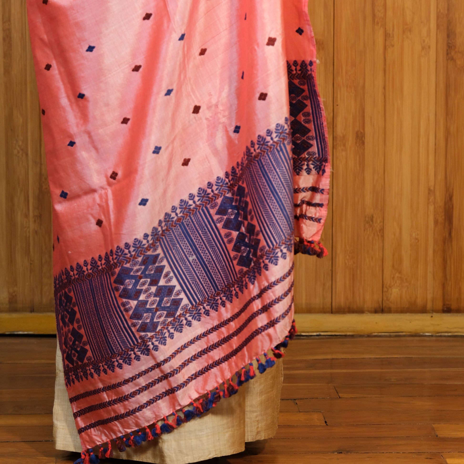 This Single Sador combines the rich texture of Mulberry silk (Paat) with the breathable comfort of cotton. The silk provides a smooth, lustrous finish, while the cotton enhances durability and ease of wear. Ideal for traditional occasions, this fabric blend offers a refined drape and lasting elegance suited for sophisticated attire.