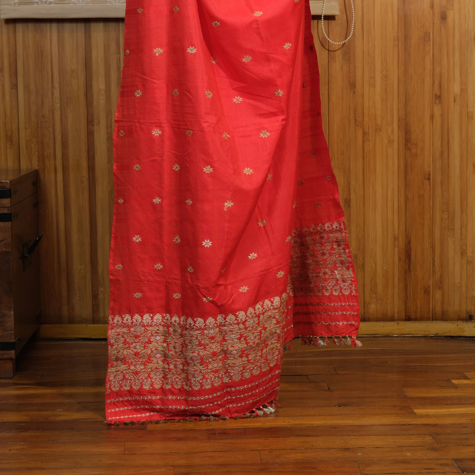 Experience the exquisite blend of tradition and luxury with the Single Sador crafted from premium Mulberry silk (Paat) and cotton. This elegant textile combines the softness and sheen of Mulberry silk with the breathable comfort of cotton, ensuring durability and refined texture. Ideal for ceremonial occasions or sophisticated everyday wear, the fabric’s natural fibers provide a lightweight yet sturdy drape. Meticulously woven to highlight the silk’s lustrous quality, this Sador offers an authentic, timeless appeal rooted in expert craftsmanship.