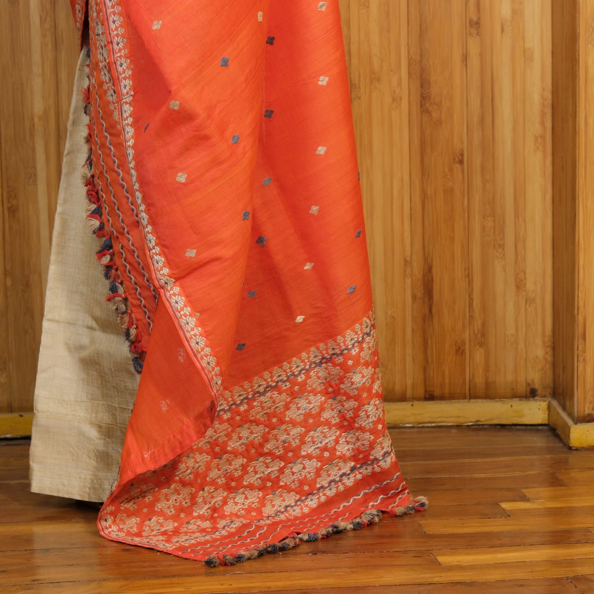 This Single Sador is crafted from a blend of nuni and cotton fibers, offering a delicate balance between softness and durability. Its breathable, lightweight fabric ensures comfort, while the natural texture provides subtle elegance. Ideal for traditional occasions or everyday wear, this sador combines refined craftsmanship with practical versatility.